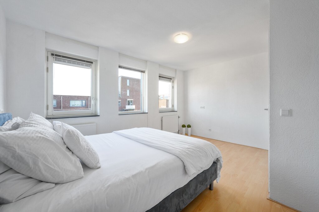 The house is centrally located in the middle of Almere in the residential area “Tussen de Vaarten”. Equipped with, among other things, a living room completely focused on the deep garden, a modern kitchen at the front with built-in appliances and space for a dining area in the bay window, and on the first floor there are two spacious bedrooms with the bathroom. The wonderfully spacious sunny backyard has a detached wooden shed and a back entrance.
