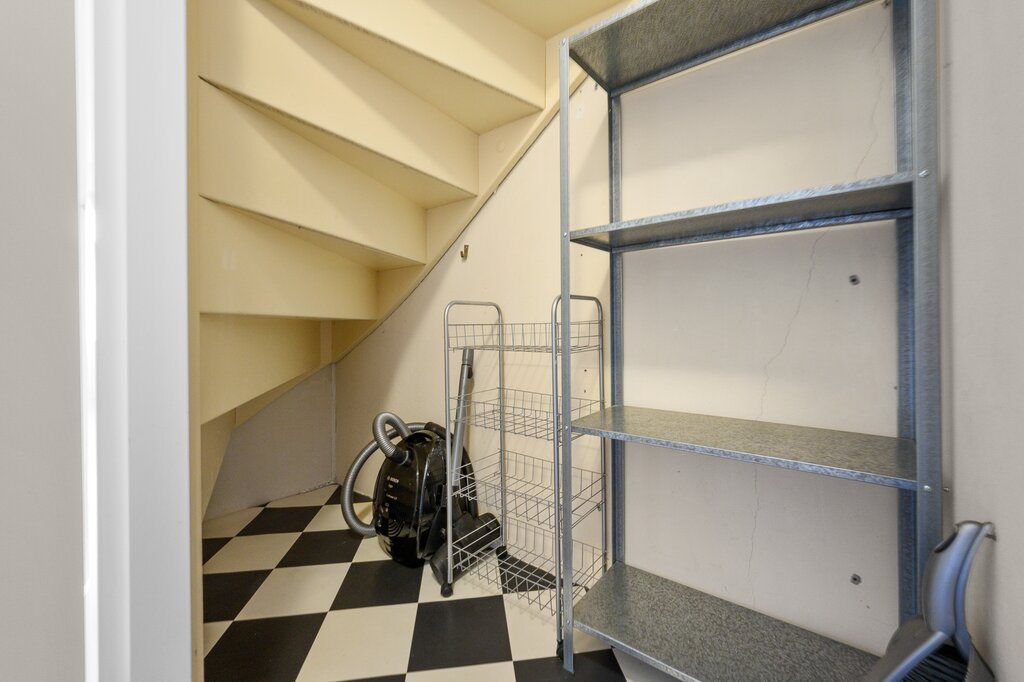 Ground floor layout: entrance, hallway with meter cupboard, toilet, stair cupboard and the staircase to the first floor. Access to the garden-oriented living room with access door to the attractive backyard (northeast). The open living kitchen is situated at the front of the house and has a modern look. The fitted kitchen has various equipment, including a dishwasher, refrigerator, freezer, oven, hob and extractor hood. The backyard offers plenty of sun and is also equipped with a wooden shed with a back entrance.
