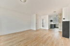 Via the gallery, where the utility meter cupboard is located, you reach the front door. Upon entering, you step into the spacious hallway with a staircase leading to the sleeping level, a neatly tiled wall-mounted toilet with small washbasin, and access to the living room. The wonderfully bright living room features a practical storage cupboard under the stairs and access to the spacious and sunny south-facing balcony (4.65 x 2.10 m). Here, you can enjoy the sun almost all day long, including the beautiful sunset.