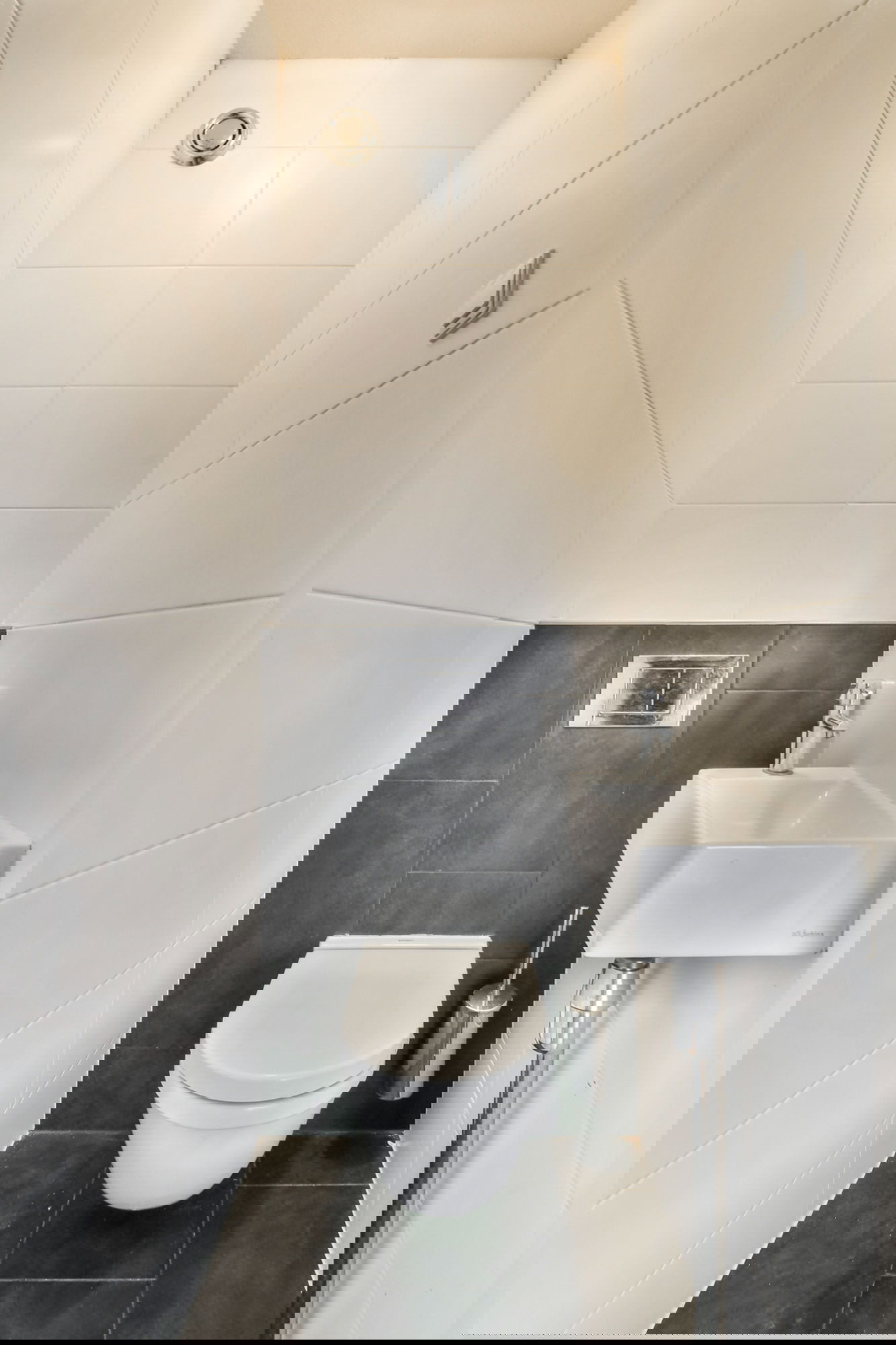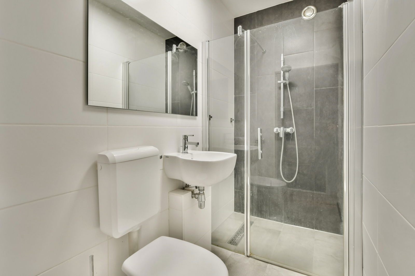 De overloop geeft toegang tot 4 slaapkamers. De moderne (inpandige) badkamer is afgewerkt met lichtgrijze vloertegels en antraciet/witte wandtegels, erg netjes! De badkamer beschikt over een ruime inloopdouche, wastafel en staand toilet.