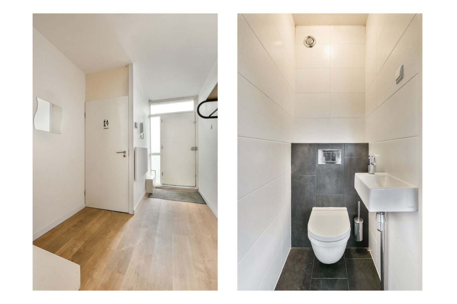 U komt binnen via de afgesloten entree met bellentableau en schuifdeur. U kunt de woongalerij bereiken via het trappenhuis of via de lift. Dit appartement beschikt ook over een eigen berging met elektra op de begane grond (9 m²).