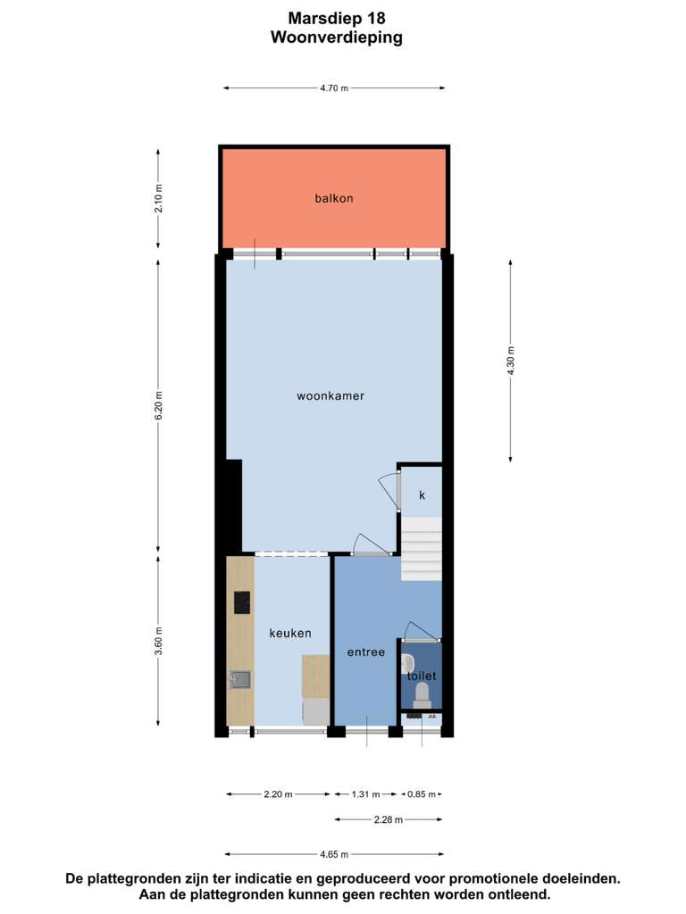 Via de galerij, waar zich de meterkast bevindt, komt u aan bij de voordeur. Binnenkomend komt u in de ruime hal met trapopgang naar slaapverdieping, netjes betegeld vrijhangend toilet met fonteintje en de toegang tot de woonkamer. De heerlijk lichte woonkamer is voorzien van een handige trapkast en toegang naar het ruime en zonnige balkon (4.65 x 2.10) op het zuiden. Je kunt hier nagenoeg de gehele dag heerlijk genieten van de ondergaande zon.
