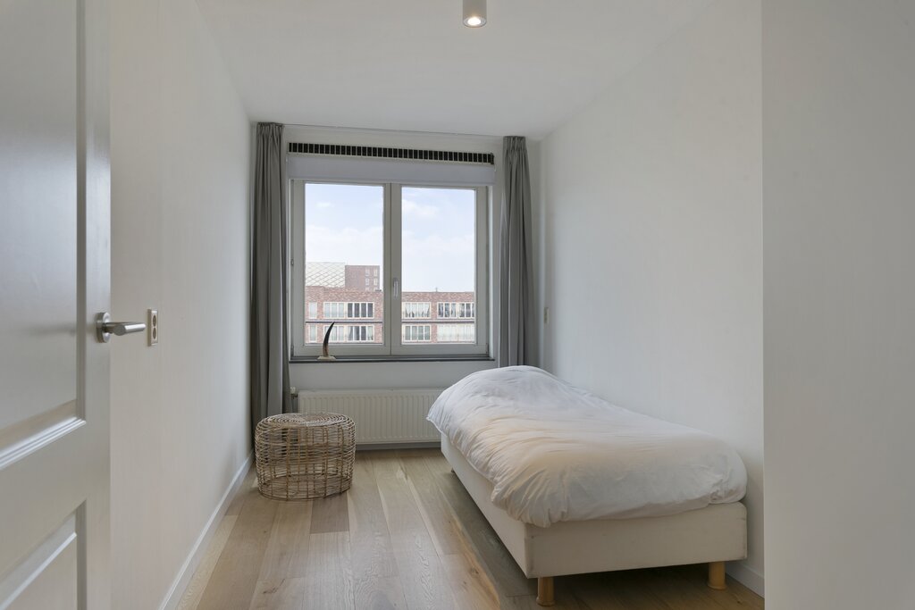 Dit appartement bevindt zich op de 4 verdieping, heeft 2 ruime slaapkamers en is voorzien van vele gemakken. Zo zorgt de ruime, lichte woonkamer met frans balkon en open keuken voor meer dan comfortabel wonen. De keuken is voorzien van inbouwapparatuur. Zoals een oven, magnetron, vaatwasser en elektrische kookplaat. De badkamer heeft naast een inloopdouche ook een heerlijk ligbad. Beneden in de onderbouw bevindt zich de eigen berging en de parkeerplaats die gelegen is in de afgesloten binnenplaats van het complex.