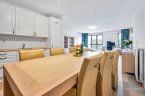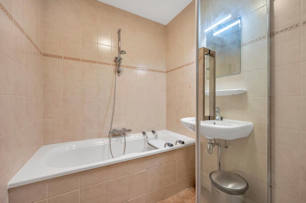 The apartment is accessible via a spacious and well-maintained communal entrance on the ground floor. The lift takes you comfortably to the fourth floor, where the entrance to the apartment is located. The generous hallway provides access to two bedrooms, the bathroom with shower and sink, a separate toilet, and the spacious living room with balcony. The open kitchen is equipped with various built-in appliances and seamlessly connects to the living area. The apartment also includes a practical storage room.