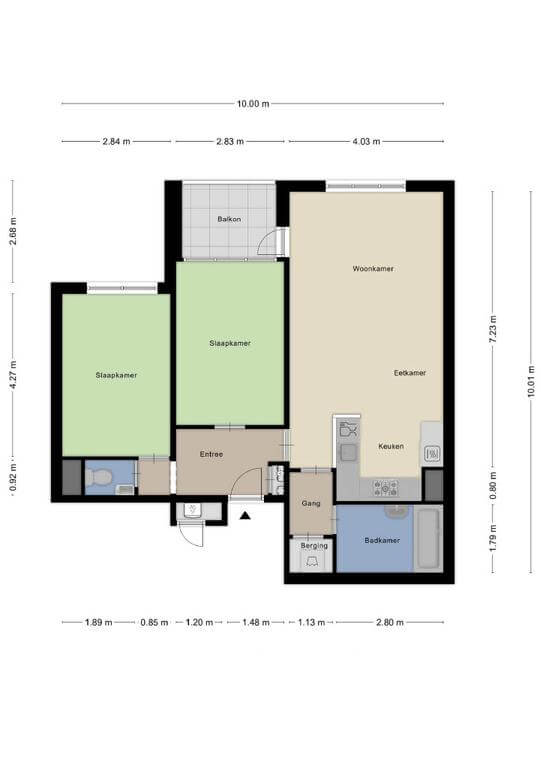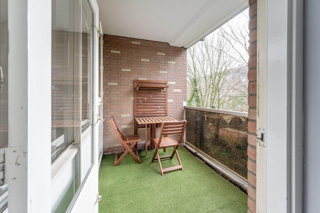 Tweede verdieping: entree met videofoon en meterkast, twee slaapkamers, separaat toilet met fonteintje, badkamer met douche, wastafel en aansluiting voor de wasmachine, lichte woonkamer, keuken in hoekopstelling. Vanuit de woonkamer is er toegang tot het balkon met leuk uitzicht over groenvoorzieningen. De gehele woning is voorzien van een kwalitatieve laminaatvloer.