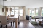 Vervolgens komt u in de riante living met veel raampartijen met ronde erker waardoor er veel lichtinval ontstaat en een prachtig uitzicht op het park met waterpartij, tevens heeft de living toegang tot het ruime zonnige en betegelde terras.