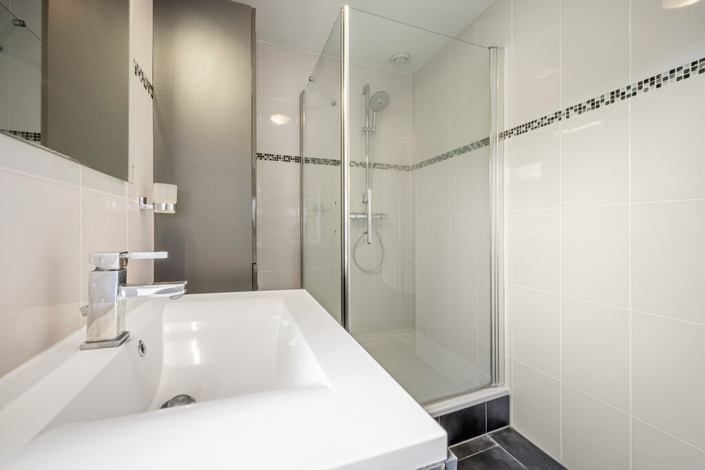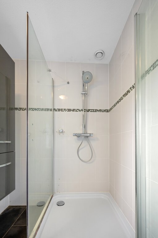 Indeling appartement: entree, hal, meterkast, zwevende toilet met fonteintje, eind van de hal is de nette badkamer gesitueerd. Deze is voorzien van een douchecabine, wastafelmeubel met bad meubel.