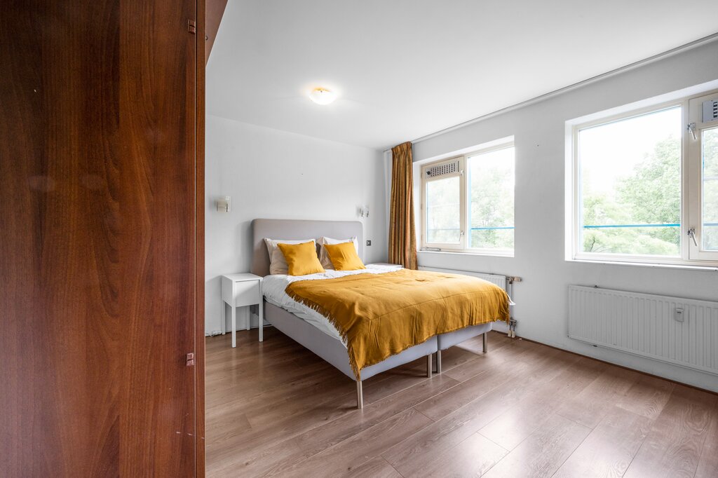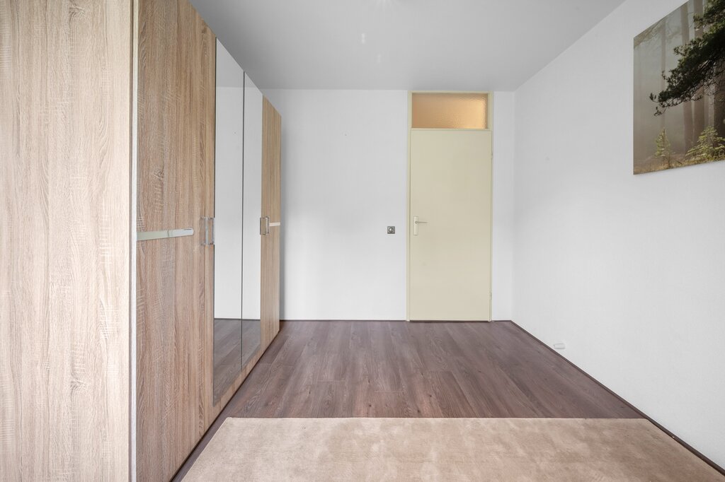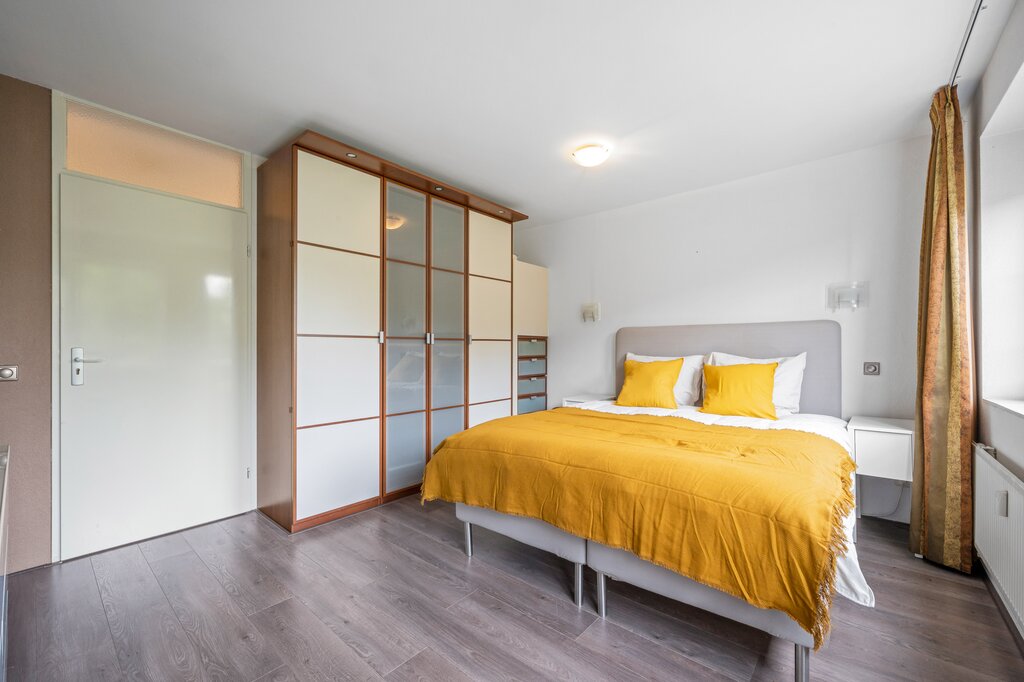 Vanuit de hal is er toegang tot de eerste slaapkamer circa 9 m2, deze is in de hoek van het complex gelegen. Vervolgens bereikt men de tweede en tevens de hoofdslaapkamer circa 12 m2.