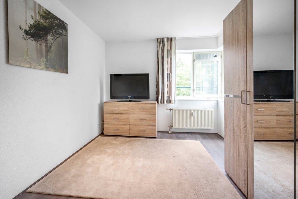 From the hall, there is access to the first bedroom (approximately 9 m²), located in the corner of the complex. Next, you reach the second and main bedroom (approximately 12 m²).