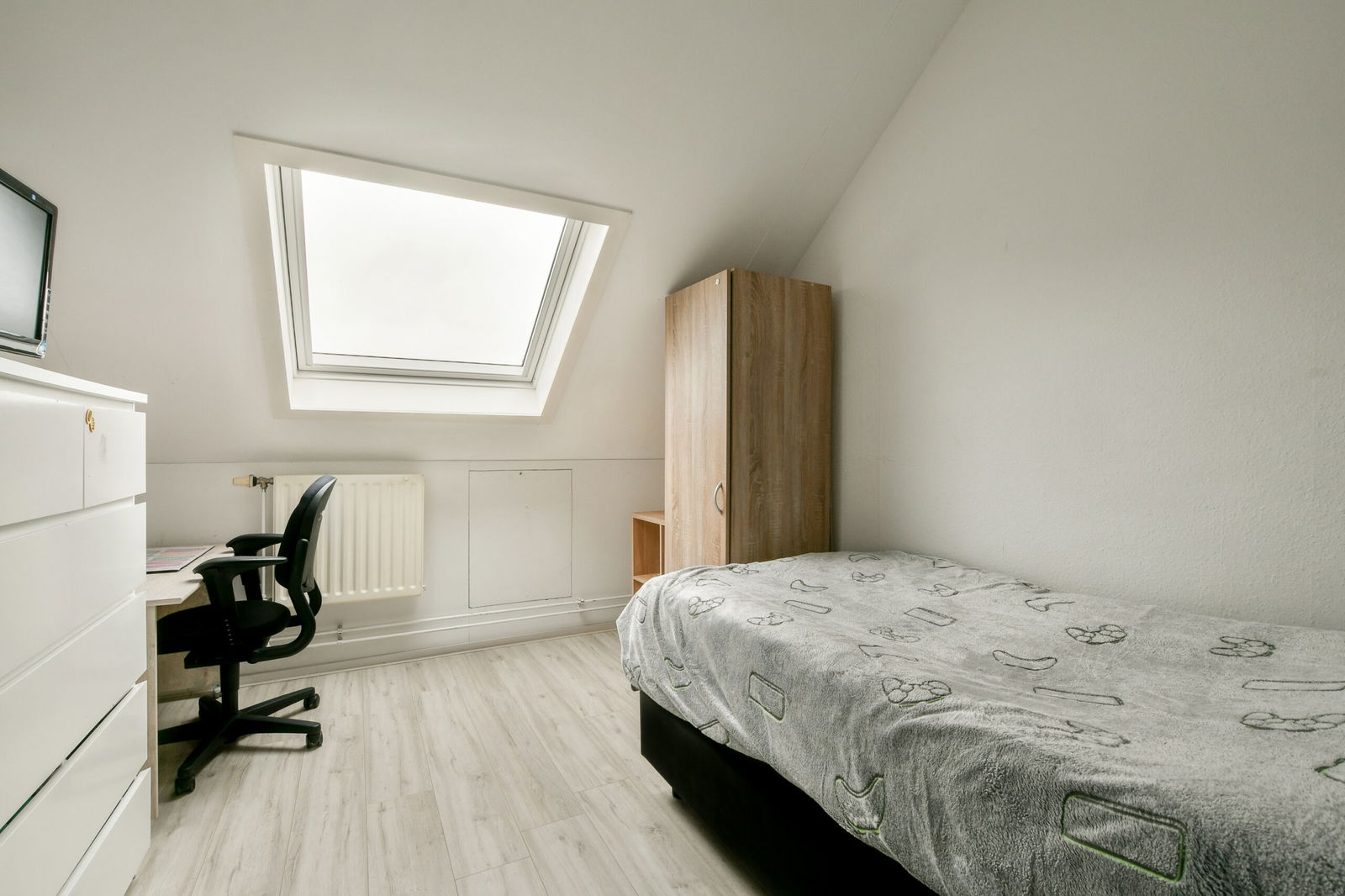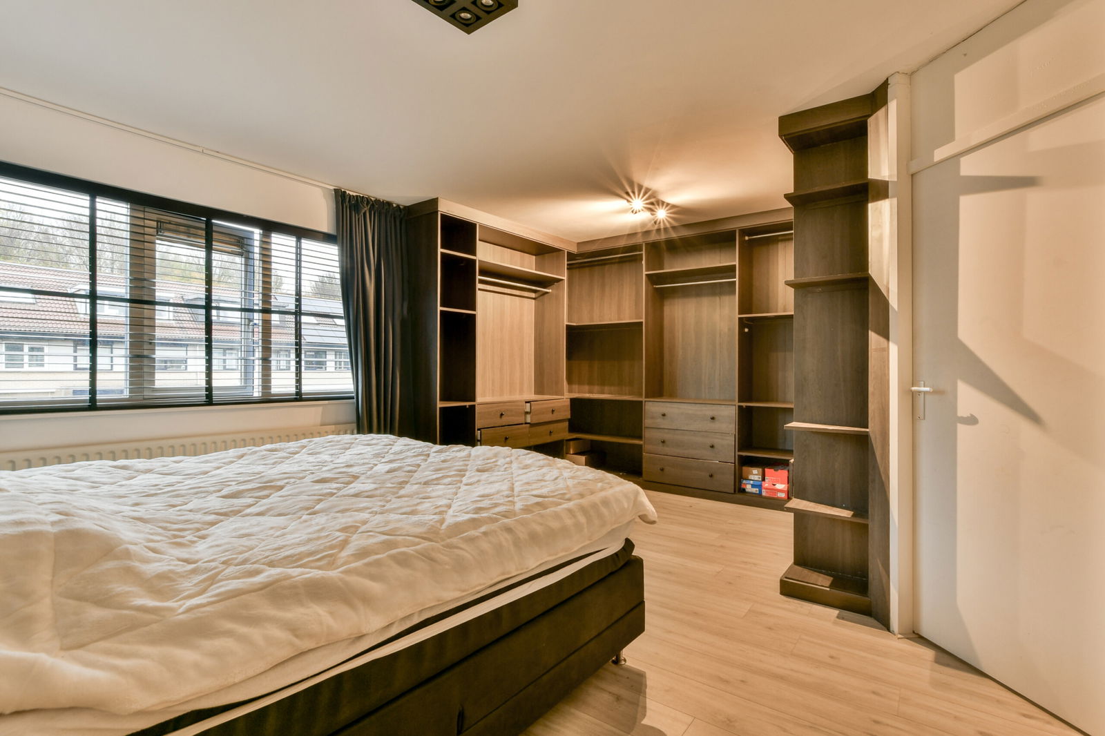 On this floor, two original bedrooms have been combined into a spacious bedroom with a walk-in closet. At the front, you will find an additional bedroom. The renovated bathroom is equipped with a bathtub, separate shower, double washbasin and a second toilet.