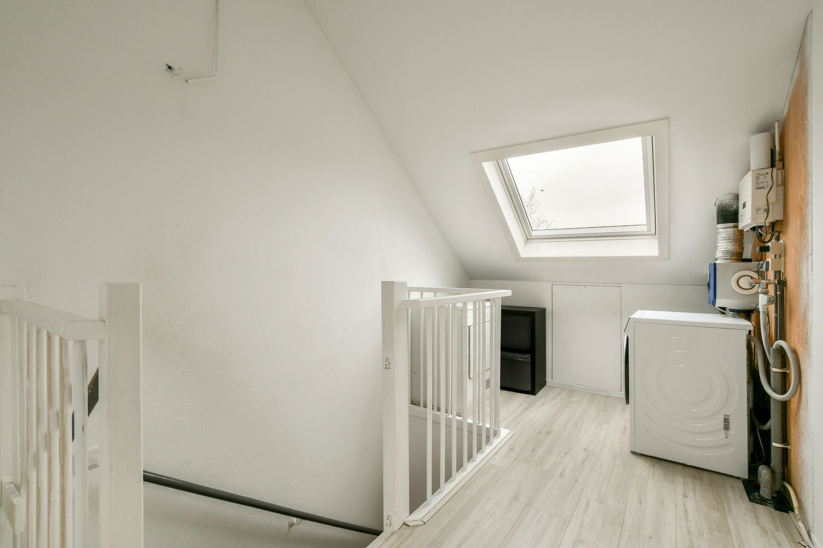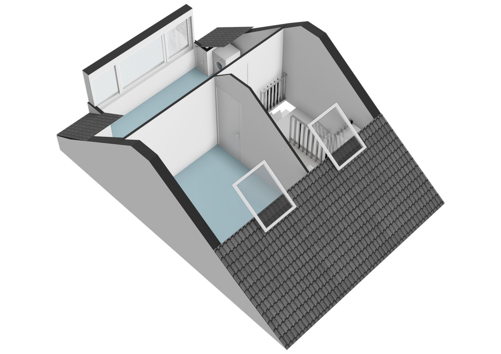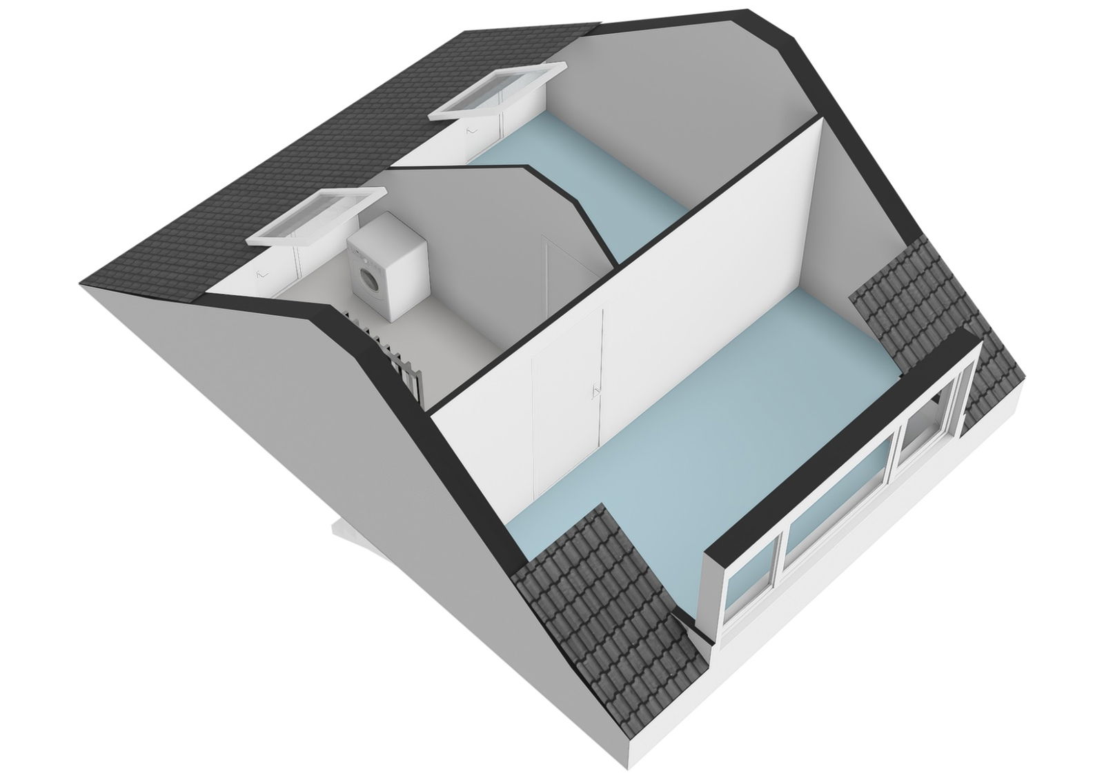 De zolder beschikt aan de achterzijde over een dakkapel en aan de voorzijde over twee grote dakramen, waardoor er veel licht binnenvalt. Hier zijn twee volwaardige slaapkamers gerealiseerd. Op de voorzolder bevindt zich de wasruimte.