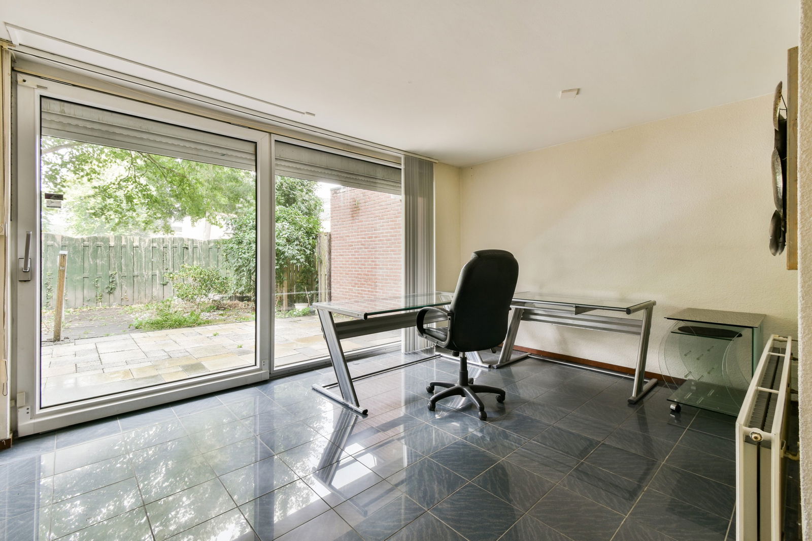 Bij binnenkomst treft u de garage met aansluitend een praktische werkkamer. Vanuit hier is er directe toegang tot de zonnige achtertuin. Ideaal voor thuiswerken of als hobbyruimte!