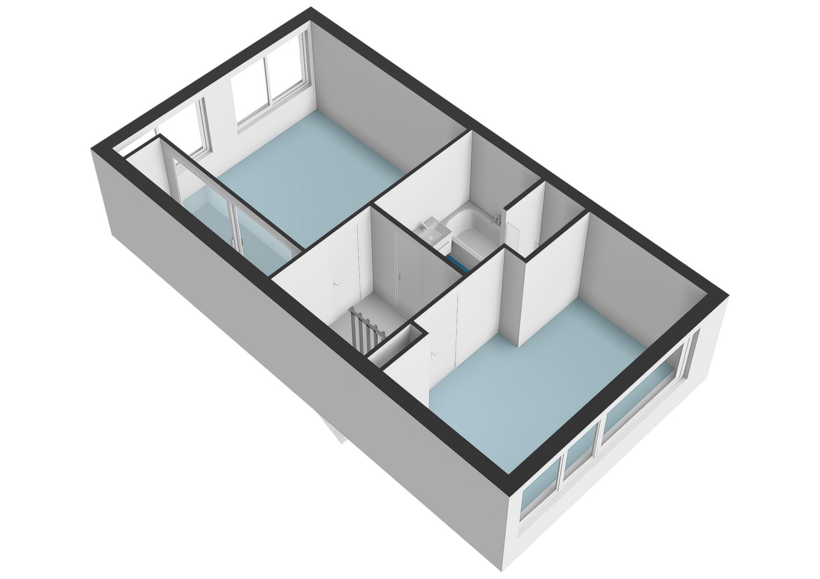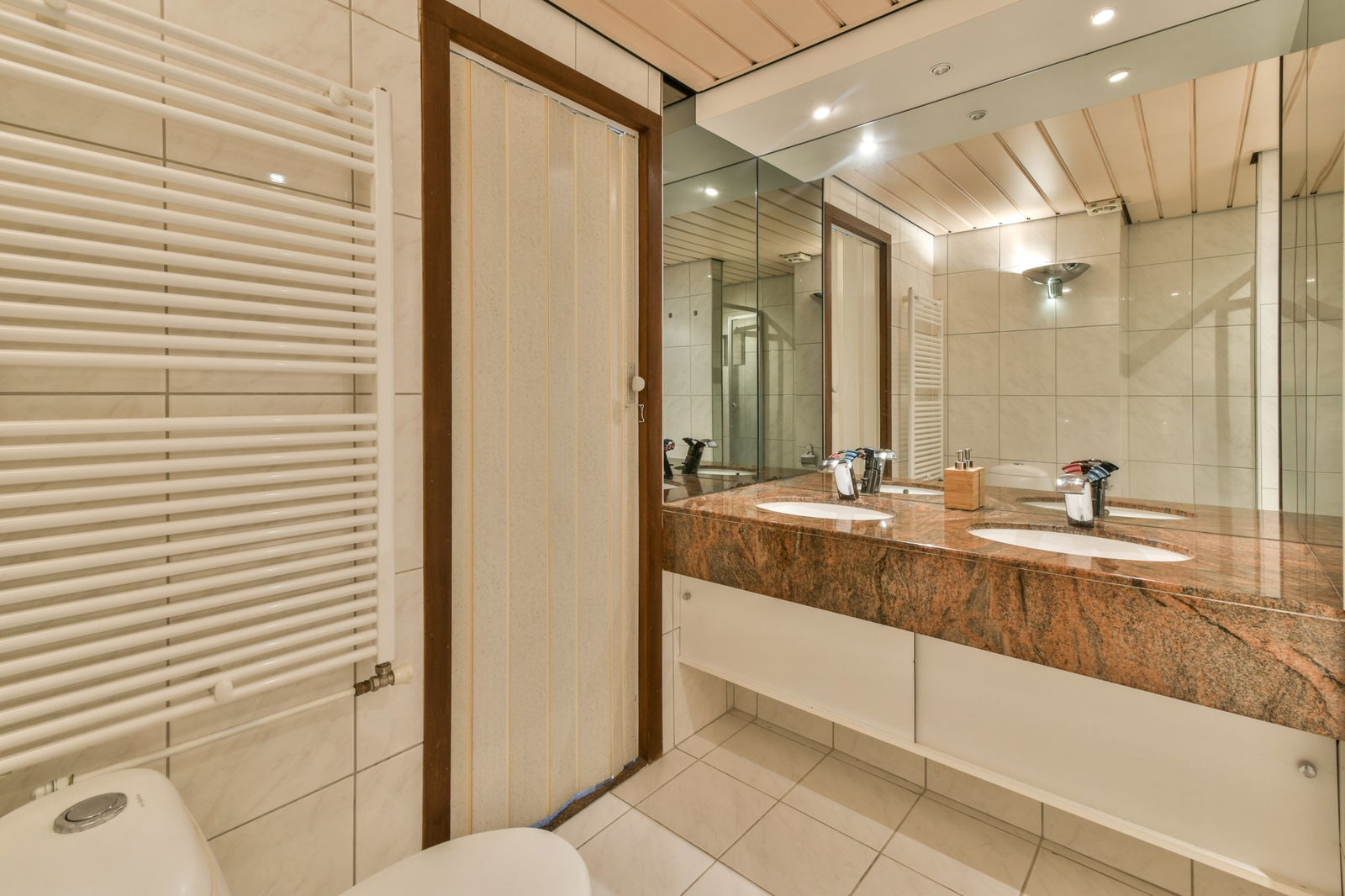 Op de bovenste etage bevinden zich twee ruime slaapkamers en een complete badkamer in het midden. De badkamer is uitgerust met een dubbele wastafel, ligbad en douche – een fijne plek om te ontspannen.