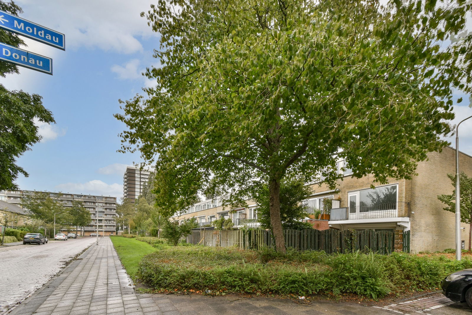 Ruime drive-in hoekwoning met garage, werk-/slaapkamer op de begane grond, 2 slaapkamers op de verdieping, balkon en zonnige tuin – Donau 3, Amstelveen