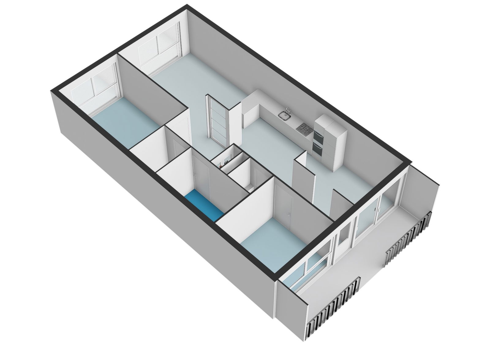 Bij binnenkomst valt direct de open en ruimtelijke indeling op dankzij de aangepaste en geopende hal. Vanuit de entree zijn alle vertrekken bereikbaar: twee ruime slaapkamers, een grote badkamer met douche, wastafel en ruimte voor een eventueel ligbad, een praktische berging met aansluiting voor wasmachine en droger en een bijzonder lichte woonkamer met open keuken (vernieuwd in 2022) die overloopt in het eetgedeelte — eventueel te gebruiken als derde slaapkamer. De woonkamer is voorzien van een moderne laminaatvloer die zorgt voor een strakke uitstraling.