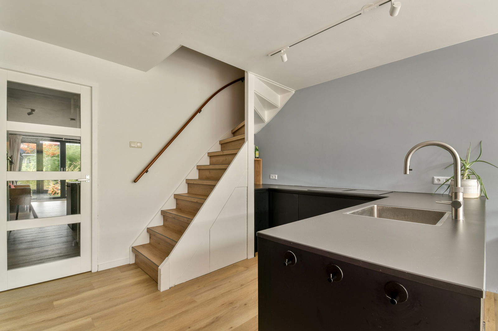 De begane grond is in 2022 uitgebouwd en volledig gerenoveerd en voorzien van een luxe woonkeuken, eethoek en zithoek. Bij binnenkomst via de overkapte entree kom je in de hal die toegang geeft tot een volledig vernieuwd toilet en de begane grond. De zeer complete keuken is voorzien van een Quooker kraan en moderne apparatuur van Siemens, met een grote kookplaat met ingebouwde afzuiging met plasmafilter, een stoomoven, een combi-magnetron oven, warmhoudlade, vaatwasser en ruime koelkast. Er is gekozen voor een slimme en ruimte-efficiënte indeling met inbouwkasten en hoge kasten, waardoor er aan opbergruimte geen gebrek is. Zo is er onder de trap, die ook in 2022 is dichtgezet en met pvc bekleed, een handige trapkast gemaakt. Naast de keuken is er genoeg ruimte op de begane grond voor een ruime eethoek en zithoek, waardoor hier een tweede woonkamer is ontstaan. Met een dubbele schuifdeur (met bijpassende hordeur) kom je in de tuin, waar je uitkijkt op groen en een bootje aan je eigen tuin. Verder is er een inpandige berging met ruimte voor fietsen, vriezer, wasmachine, droger en verdere opslag. De meterkast is gesitueerd in de hal en is in 2022 volledig vernieuwd met voldoende groepen en krachtstroom. Energieleverancier Liander heeft tevens in 2025 nieuwe meters geïnstalleerd, waardoor je hier de komende jaren geen omkijken naar hebt.
