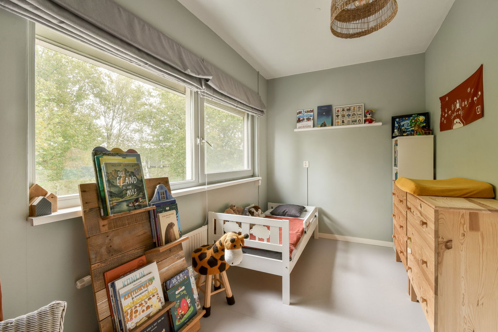 Op de eerste verdieping vind je een royale en lichte woonkamer/tv-kamer met uitzicht op de tuin. Ook bevindt zich hier een ruime slaapkamer die momenteel als werkkamer in gebruik is, met een ruime trapkast en zeer praktische indeling. Aan beide kanten van het huis zijn de ramen voorzien van horren en elektrische rolluiken, waardoor je altijd kunt luchten of het licht/warmte buiten wilt houden indien gewenst. De vlonder boven de trap biedt extra ruimte om bijvoorbeeld een mooie plant te plaatsen, zonder dat je hiermee beweegruimte verliest. Desgewenst zou hier een 4e slaapkamer gerealiseerd kunnen worden, door de woonkamer op de begane grond te situeren.