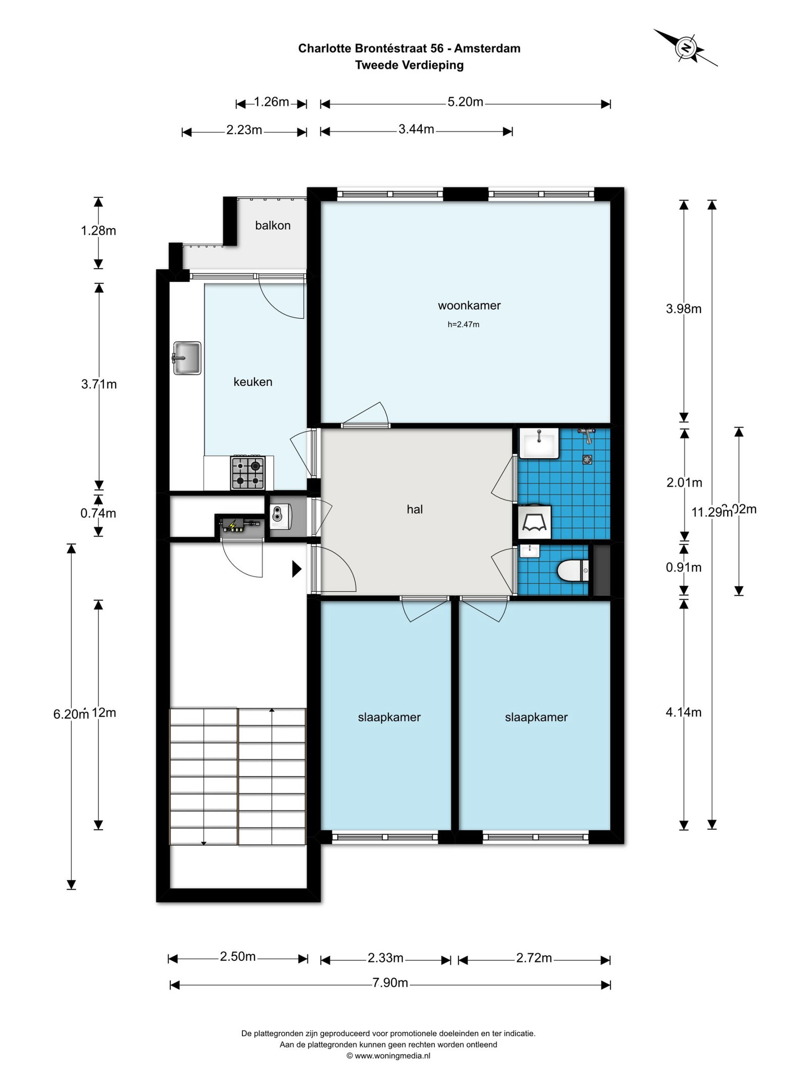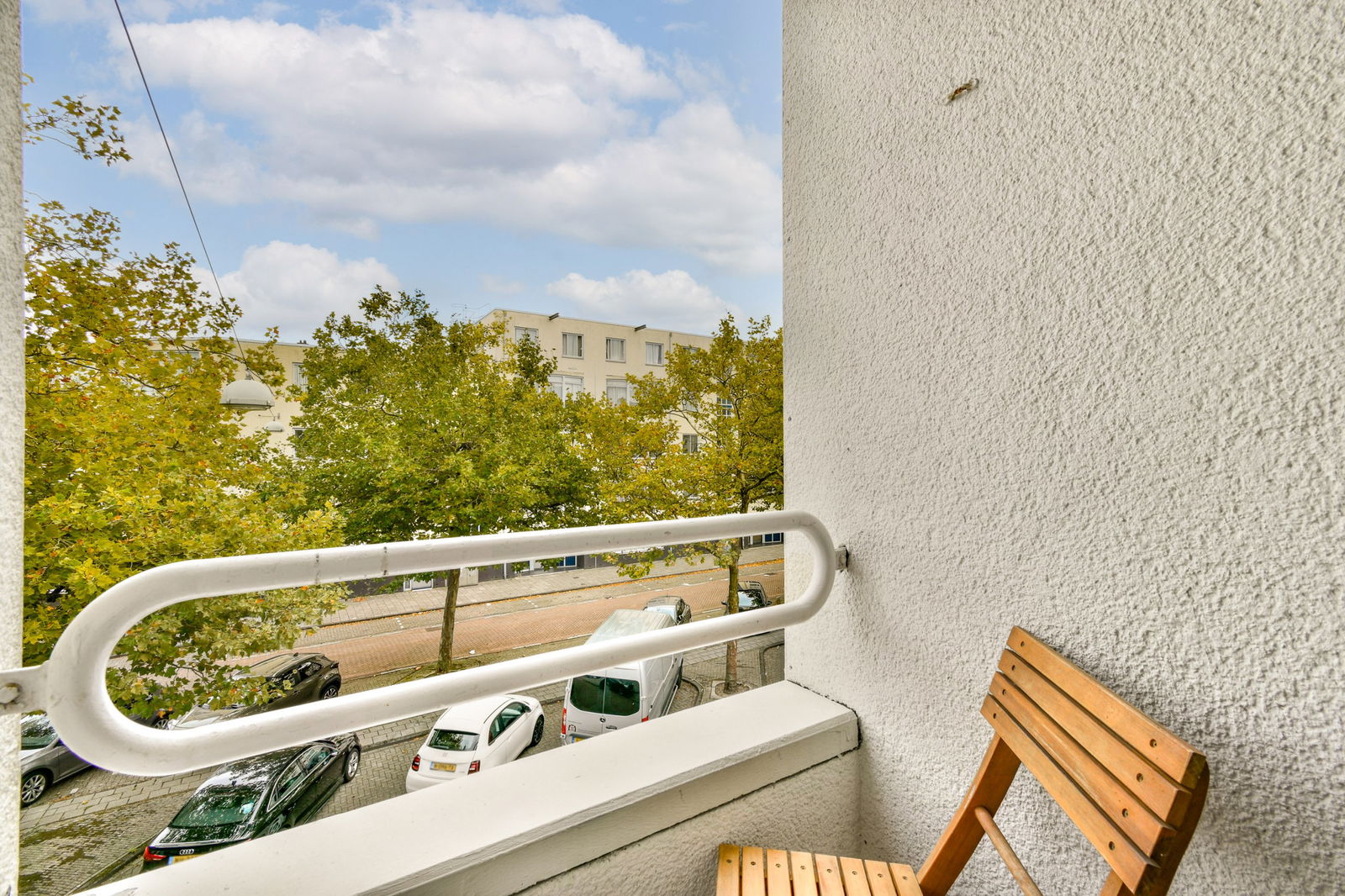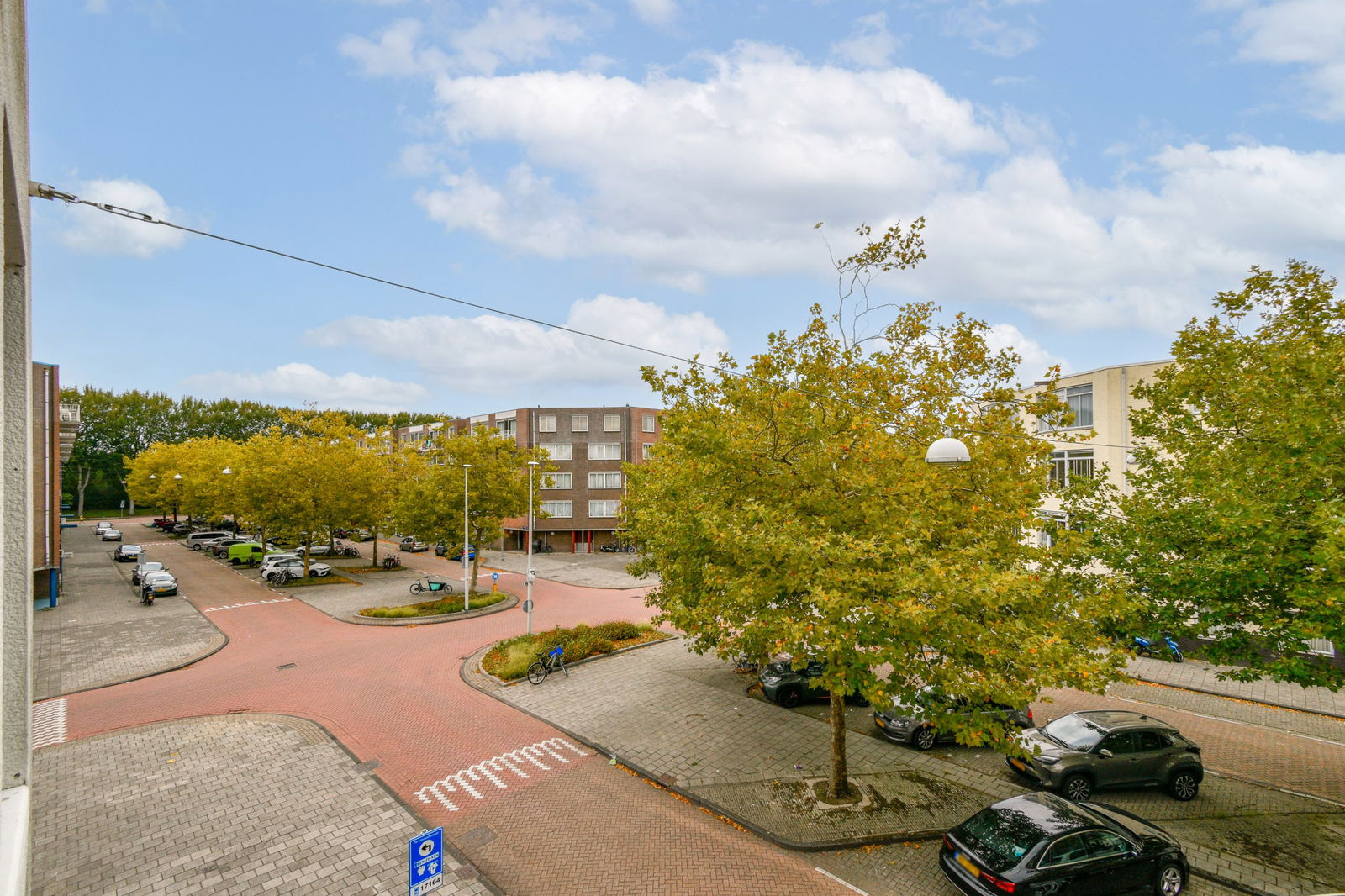 Via de gemeenschappelijke trap bereikt u het lichte 3-kamerappartement op de tweede verdieping. De hal in het midden van de woning geeft toegang tot alle vertrekken. Aan de voorzijde bevindt zich de woonkamer, die dankzij de grote raampartijen prettig licht is. De gesloten keuken is uitgerust met een keukenblok voorzien van AEG/Zanusssi inbouwapparatuur en biedt toegang tot het balkon.