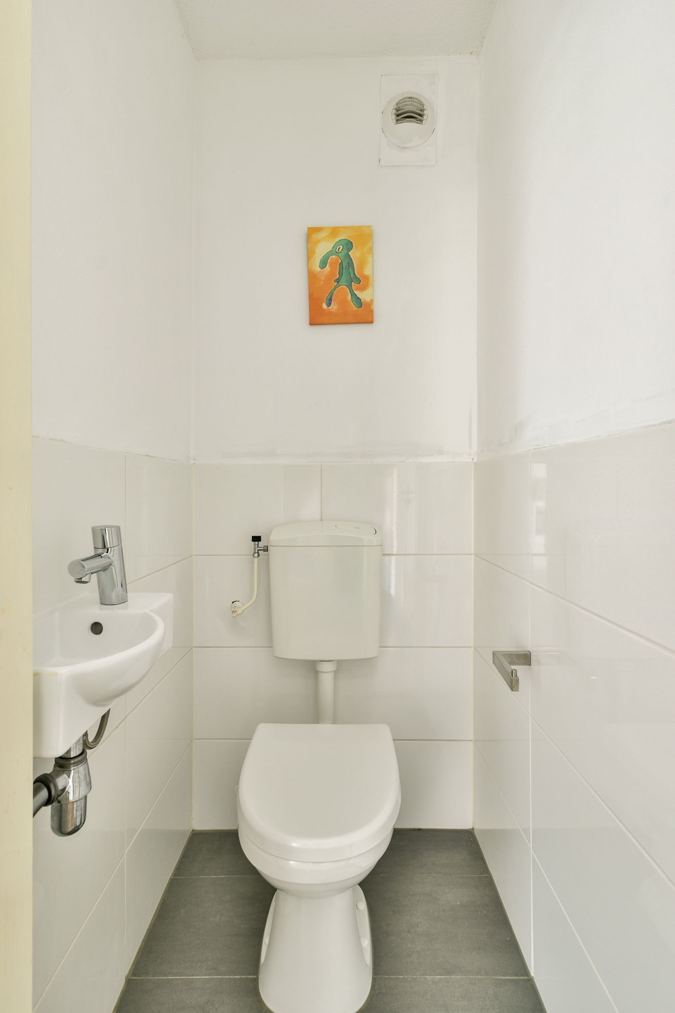 Aan de achterzijde liggen twee lichte slaapkamers. De badkamer is voorzien van een douche, wastafel en aansluiting voor de wasmachine. Daarnaast beschikt de woning over een separate toiletruimte.
