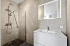 Upon entering, you step into the hallway, which leads to the bright and spacious living room with an open kitchen. The kitchen is equipped with a refrigerator, freezer, dishwasher, and a combination microwave oven. The apartment also features a balcony that enjoys plenty of sunlight throughout the day, making it a perfect spot to relax. The bathroom includes a walk-in shower and sink, and there is a separate toilet. The bedroom is spacious and comfortable.