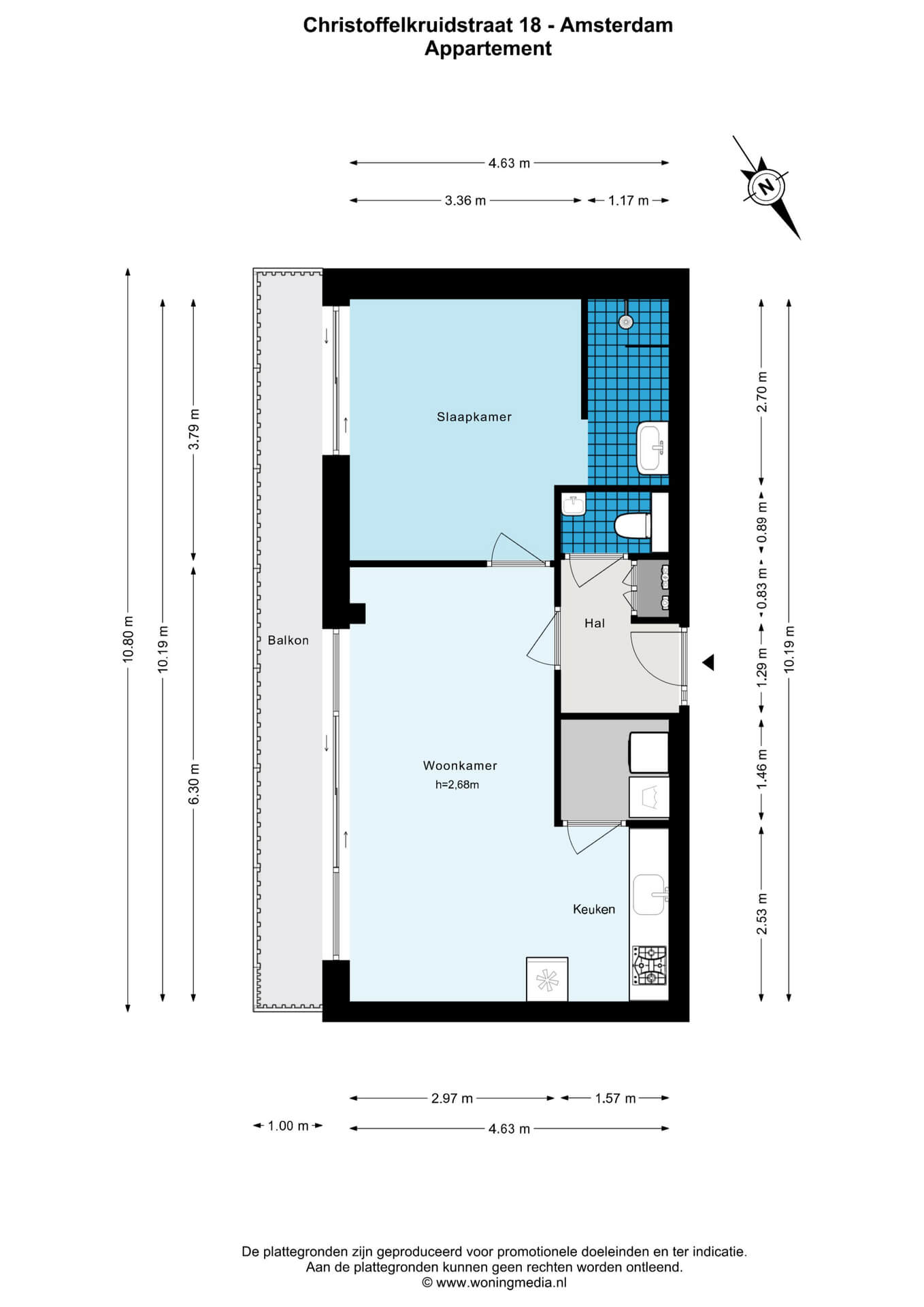 Bij binnenkomst komt u in de hal, die toegang geeft tot de lichte en ruime woonkamer met open keuken. Deze is voorzien van koelkast, vriezer, vaatwasser & combi oven magnetron. Er is een balkon welke gedurende de dag voldoende zonlicht biedt en waar u dus heerlijk kunt vertoeven. De badkamer is voorzien van inloop douche en wastafel. Tevens heeft u de beschikking over een separaat toilet. De slaapkamer is ruim.