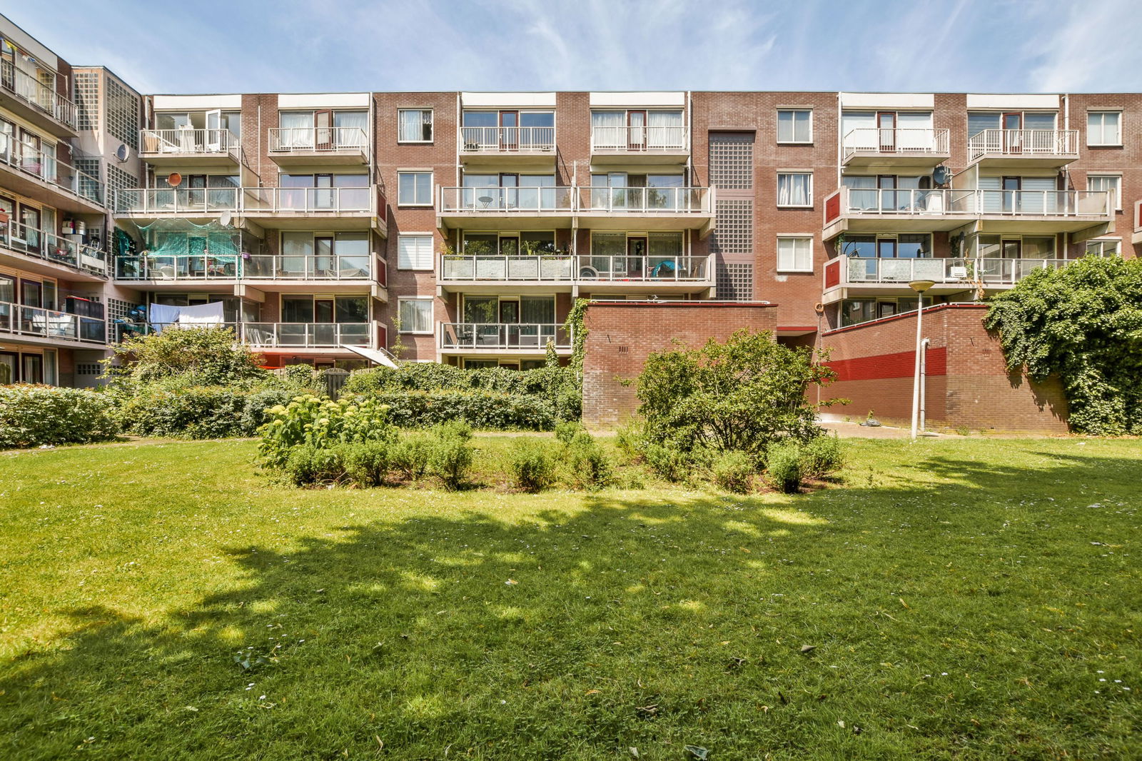 Het complex heeft een beveiligde entree en trappenhuis, bij binnenkomst in het appartement kom je in de hal die toegang geeft tot bijna alle vertrekken. De woning heeft een ruime woonkamer, een halfopen keuken voorzien van diverse inbouwapparatuur, 2 slaapkamers en een badkamer met douche en wastafel. De tuin gelegen op het zuidoosten, aan de achterkant van het appartement, is ruim bemeten. Daarnaast beschikt de woning ook over een externe berging.