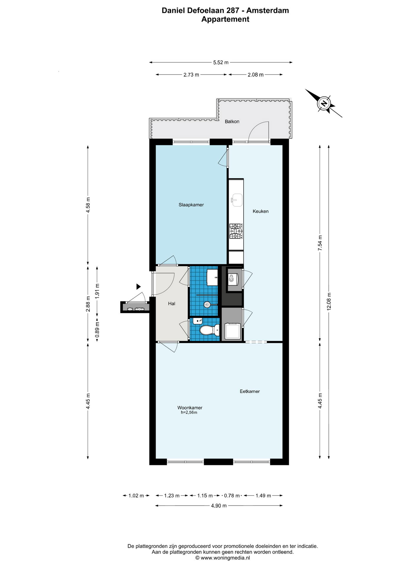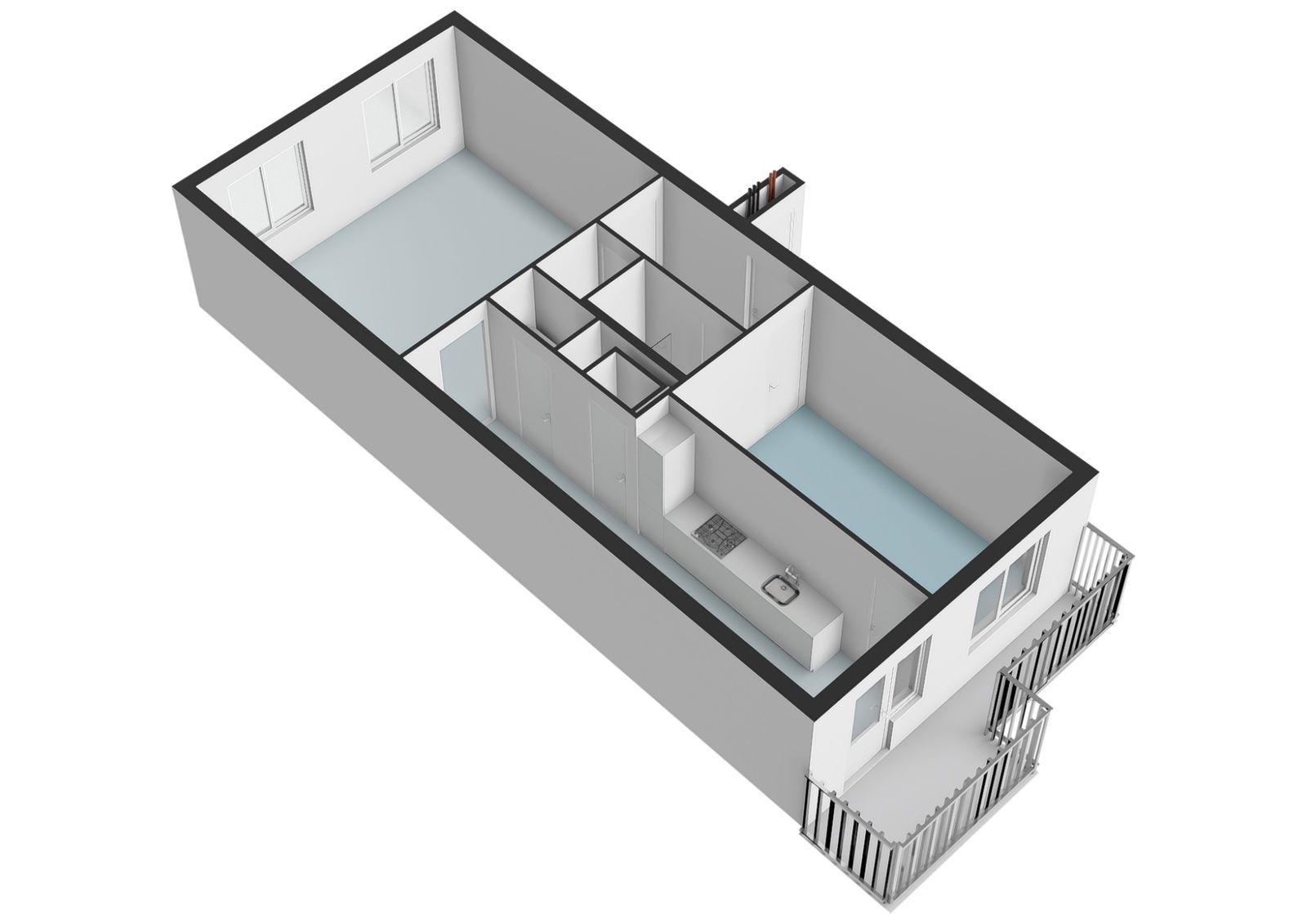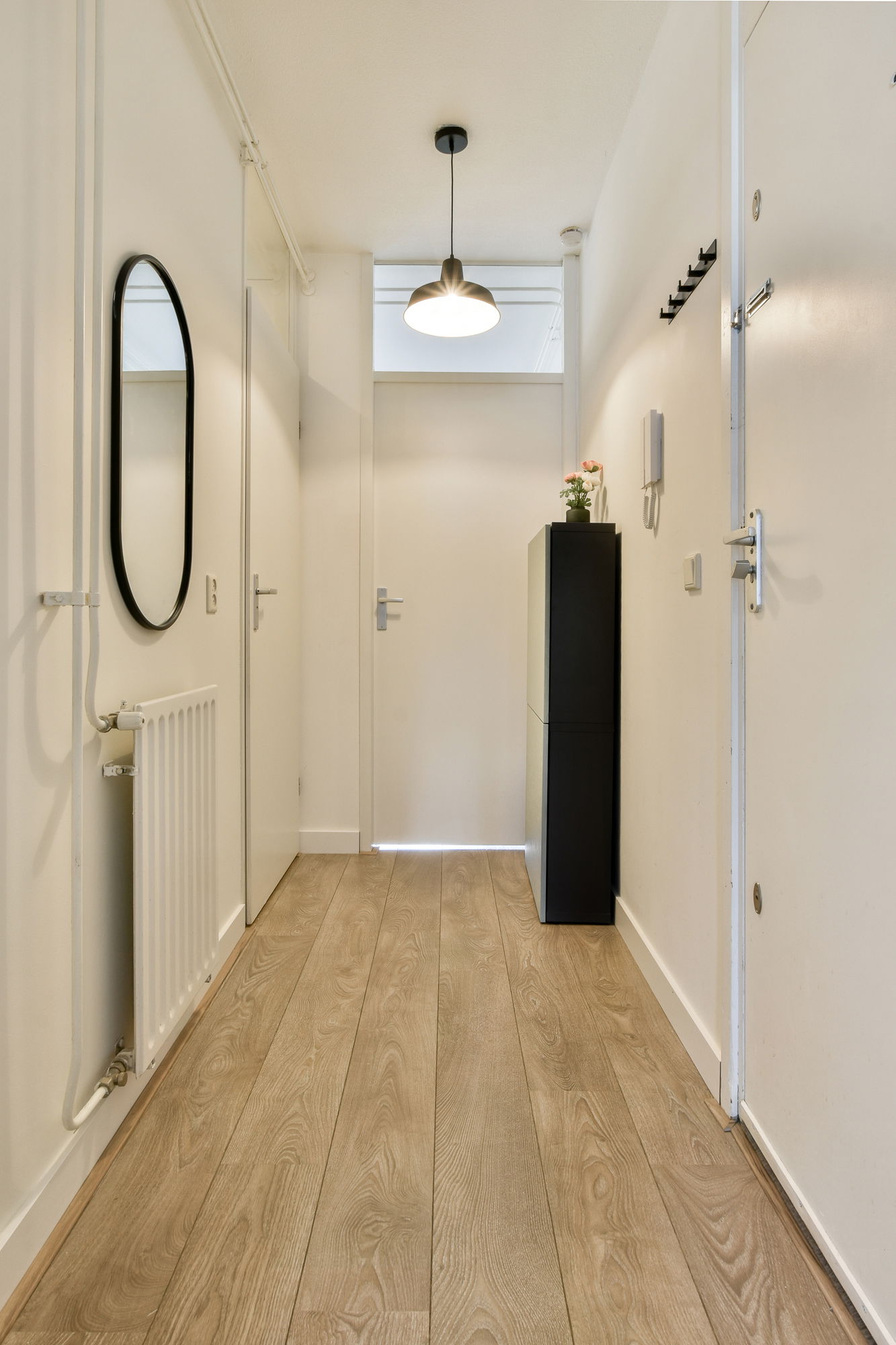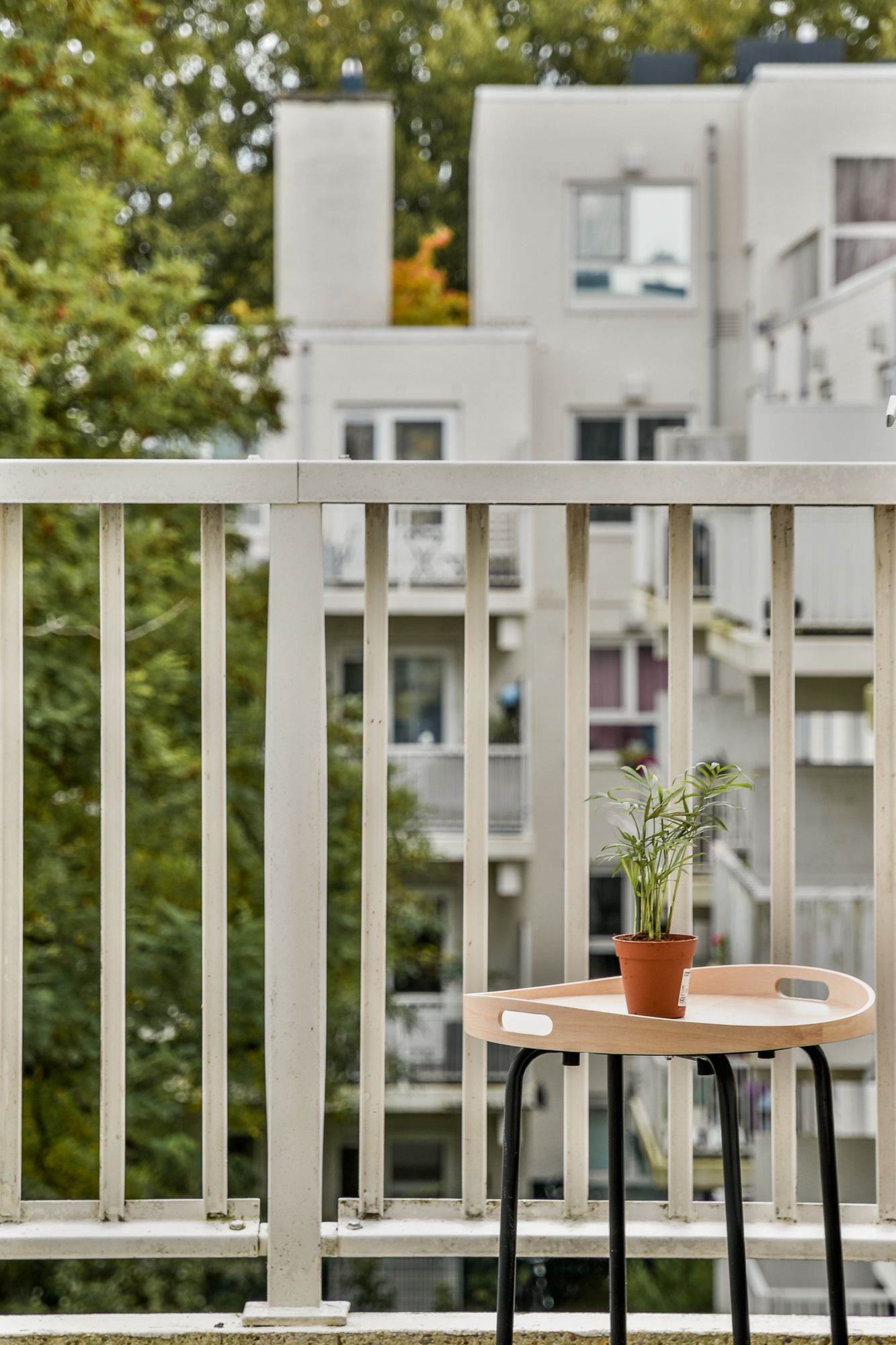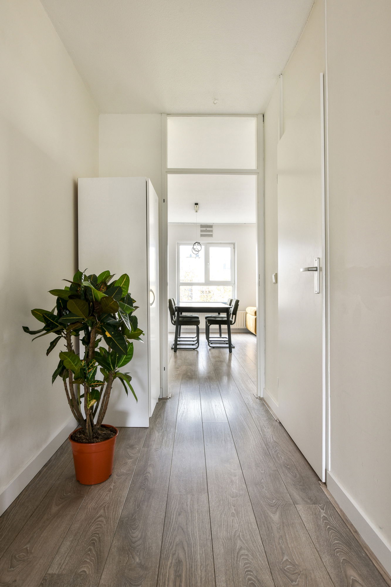 De entree van het appartement bevindt zich op de derde verdieping. Vanuit de hal zijn vrijwel alle vertrekken bereikbaar. Aan de voorzijde, gelegen aan een rustige straat, bevindt zich de lichte woonkamer met ruimte voor een eethoek. Aansluitend ligt de keuken en een praktische inpandige berging met wasmachineaansluiting, die tevens toegang biedt tot het balkon op het noordoosten. De ruime slaapkamer aan de achterzijde kijkt uit op de groene binnentuin. Centraal in de woning bevinden zich een apart toilet en een badkamer met wastafel en douche.