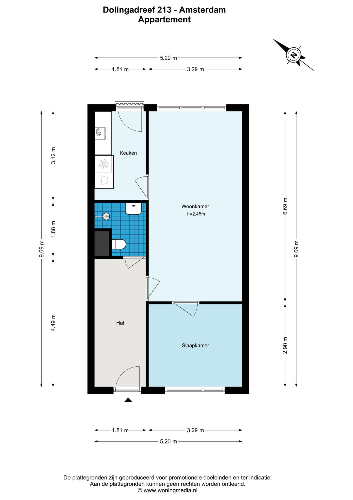 Via de afgesloten entree en het gemeenschappelijke trappenhuis bereikt u de woning op de vierde en tevens bovenste verdieping. De hal geeft toegang tot alle vertrekken.