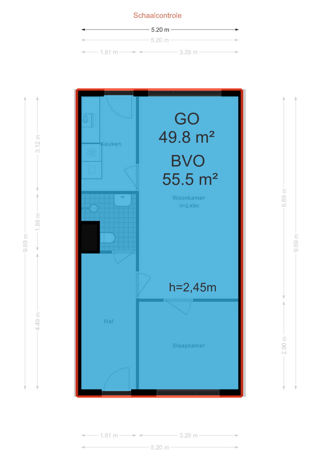 Woonoppervlakte circa 50 m²