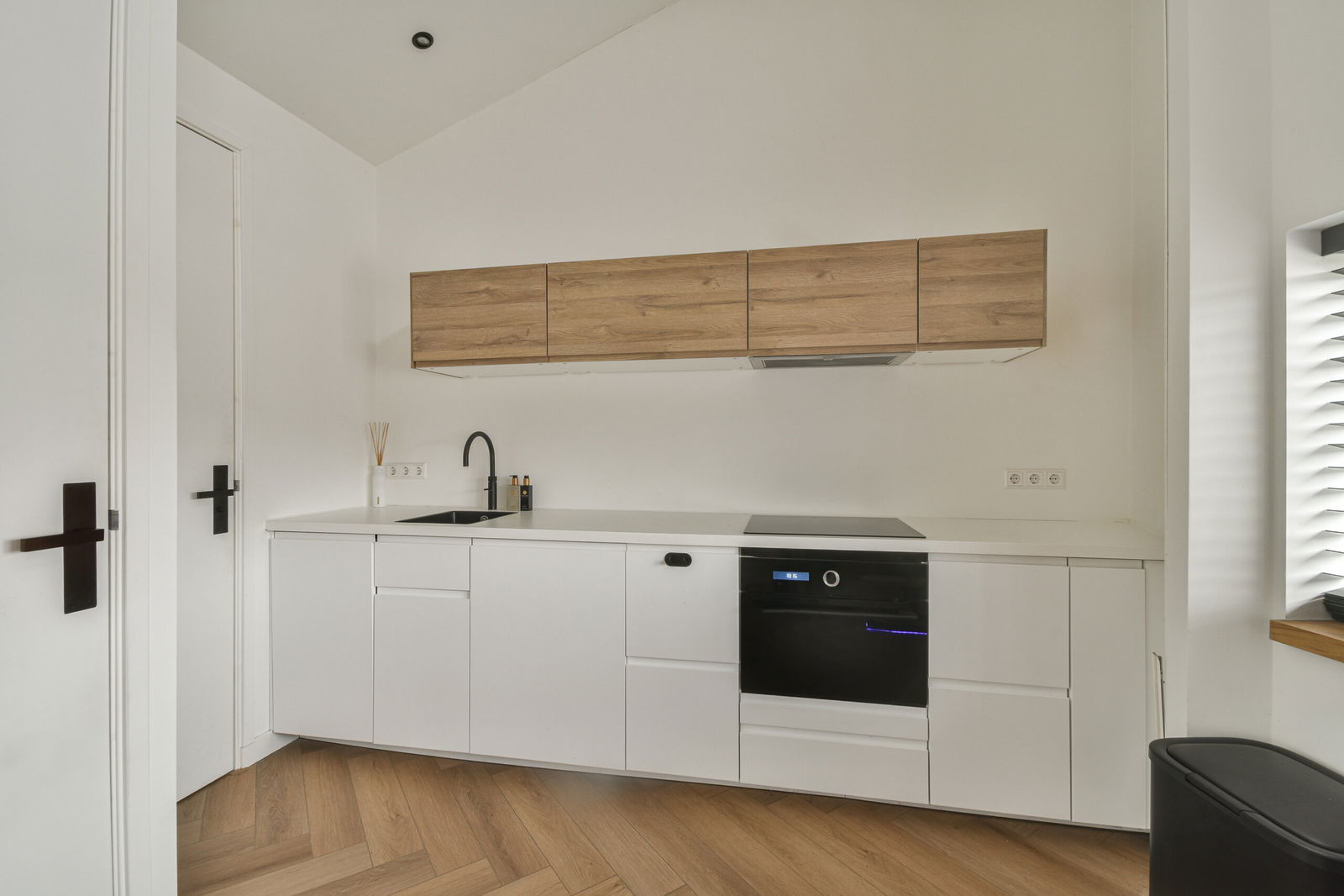 De luxe open keuken is uitgerust met hoogwaardige inbouwapparatuur, waaronder een inductiekookplaat, combi-oven, vaatwasser, afzuigkap én een Quooker. De gehele woning beschikt over vloerverwarming, wat in combinatie met de airco zorgt voor een aangenaam woonklimaat het hele jaar door.