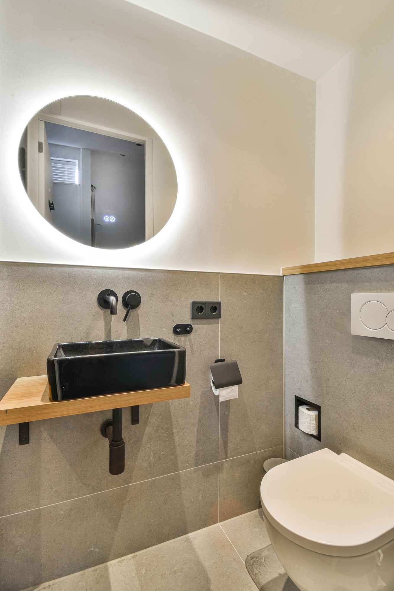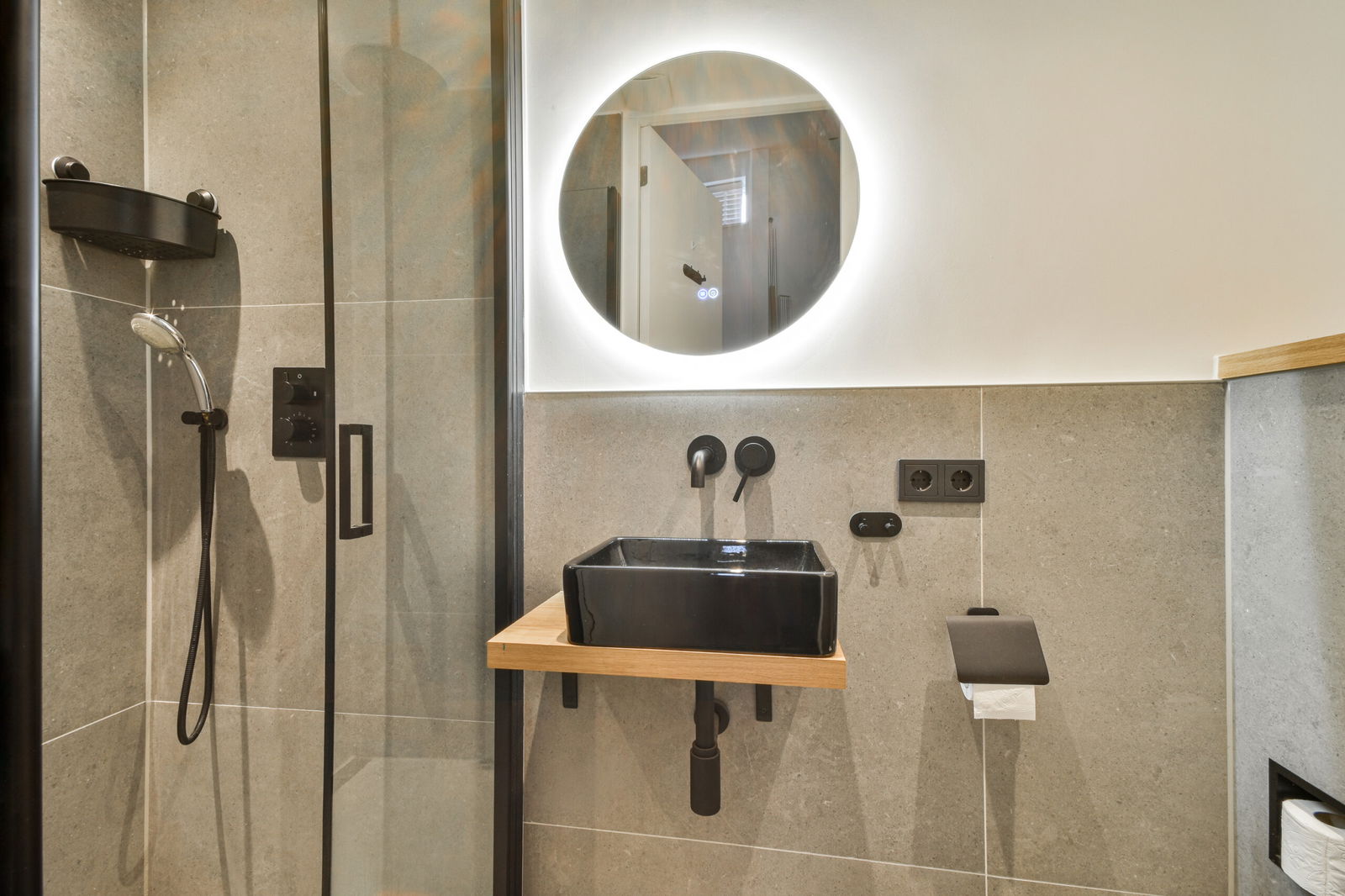 De moderne badkamer is eveneens luxe uitgevoerd en voorzien van een douche, wastafel en toilet. Dankzij de ramen valt er natuurlijk licht naar binnen, wat de ruimte een frisse en aangename uitstraling geeft. Ook is er een intercom met camera aanwezig, wat extra veiligheid en gemak biedt.