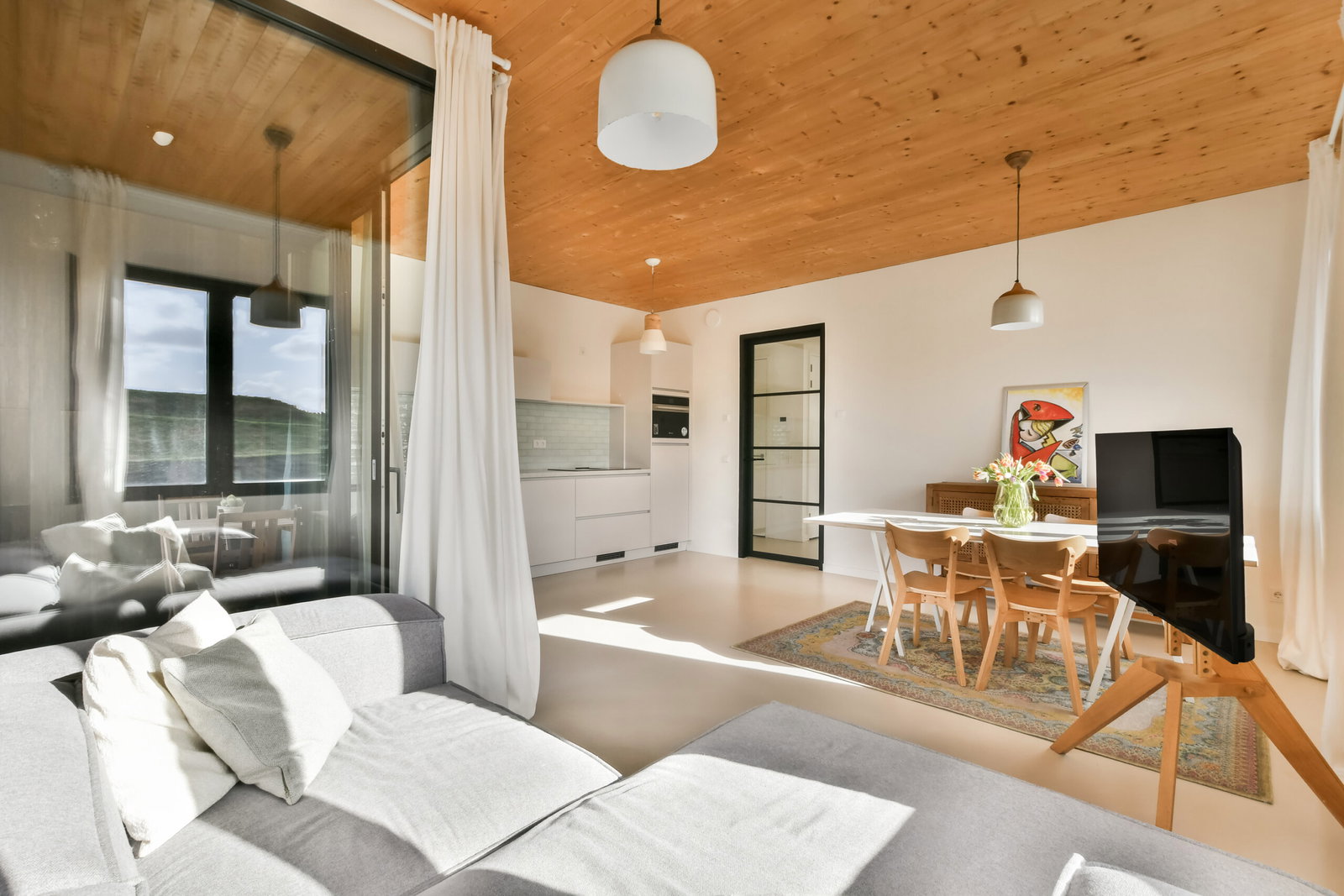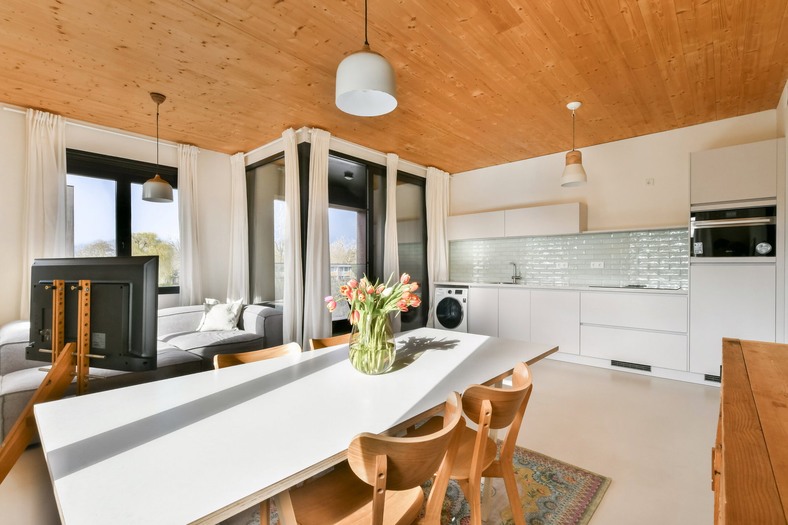 This modern apartment is brand new and ready for immediate occupancy. The spacious kitchen-living area forms the heart of the home. Large windows provide plenty of natural light and offer unobstructed views of the green surroundings.