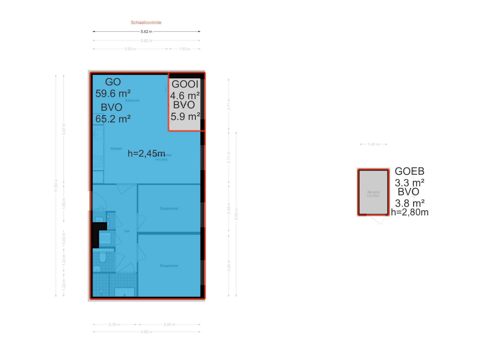 Appartement en externe berging op de 2e verdieping;