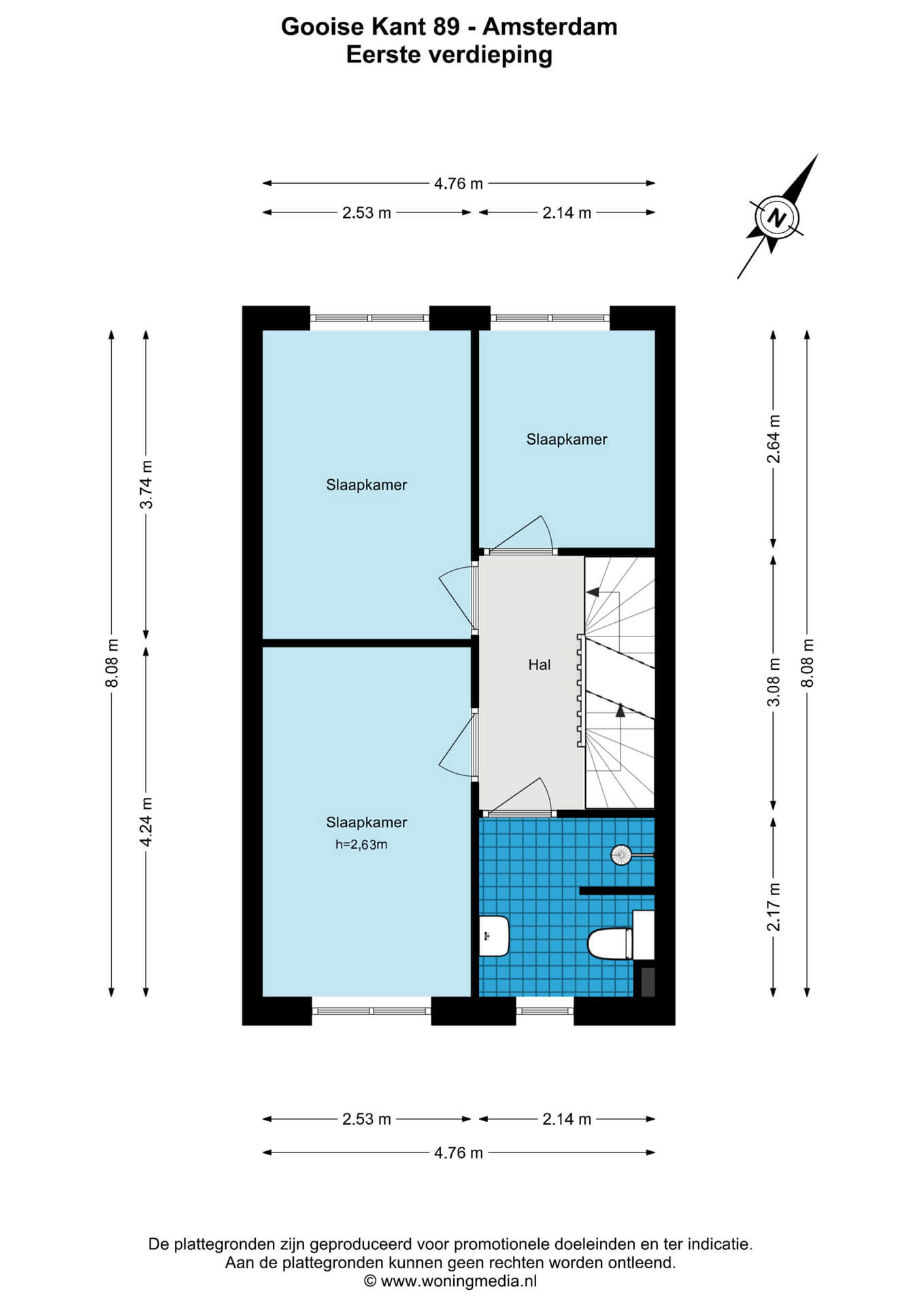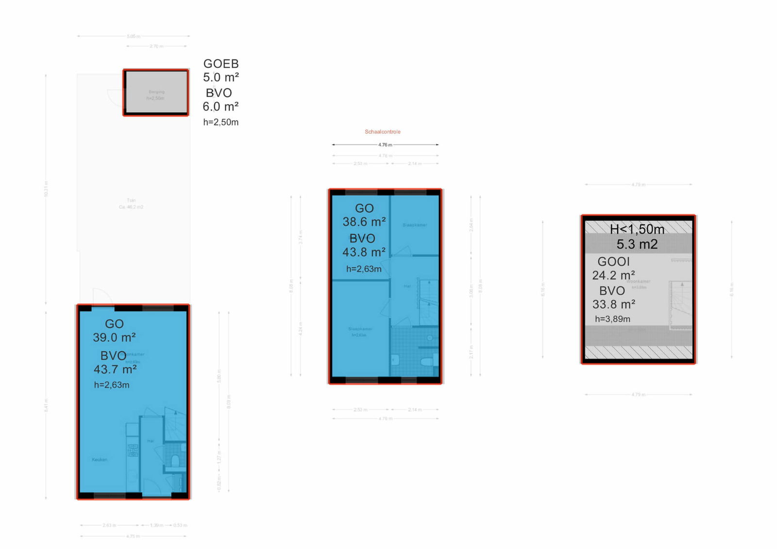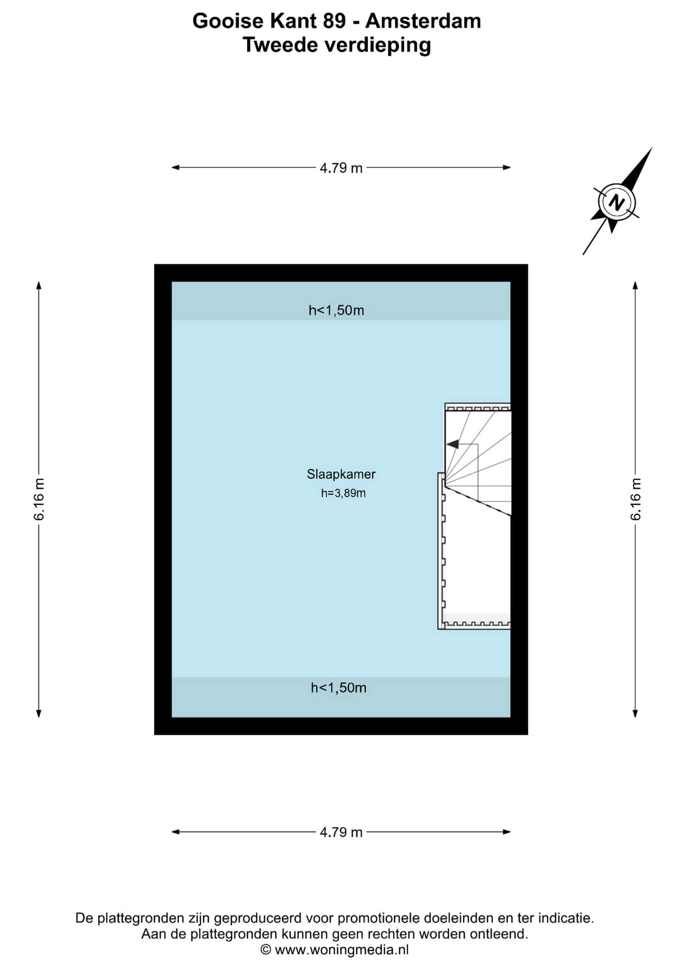 Let op: het officiële woonoppervlak is lager opgegeven omdat de tweede verdieping momenteel niet voldoet aan de NEN2580-norm voor woonruimte. Deze verdieping functioneert nu als bergzolder vanwege een gebrek aan daglicht (minder dan 1 m² raamoppervlak). Door het plaatsen van een dakraam of dakkapel van minimaal 1 m², voldoet deze ruimte wél aan de norm en bedraagt het woonoppervlak ca. 102 m².