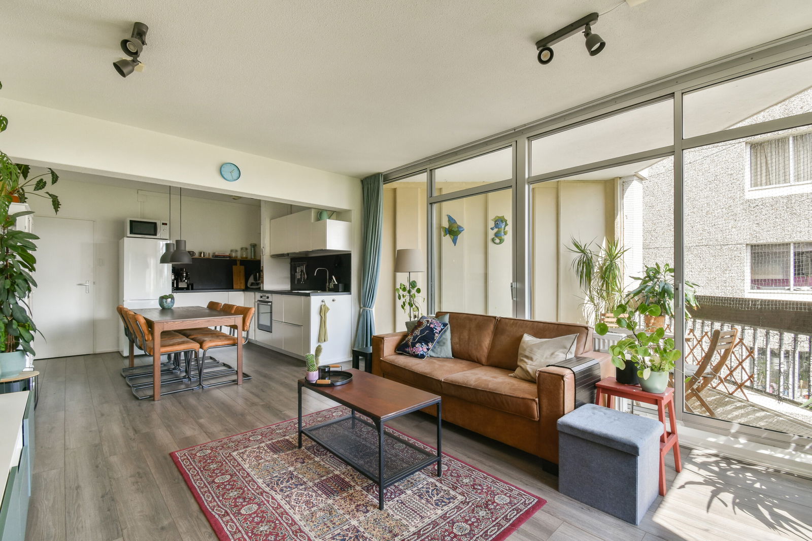 This well-maintained and comfortable 2-bedroom apartment of approx. 54 m² is located on the seventh floor of a well-kept residential complex in the popular Gouden Leeuw building. The apartment features a modern open-plan kitchen, a neat bathroom with toilet, sink, and shower, a spacious southeast-facing balcony, and a pleasant, practical layout. Thanks to the second bedroom—perfectly suited as a home office or guest room—this apartment is ideal for first-time buyers, singles, or couples looking to live comfortably and centrally in the green and well-connected surroundings of Amsterdam-Zuidoost.
