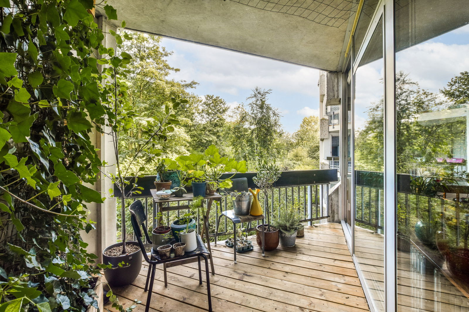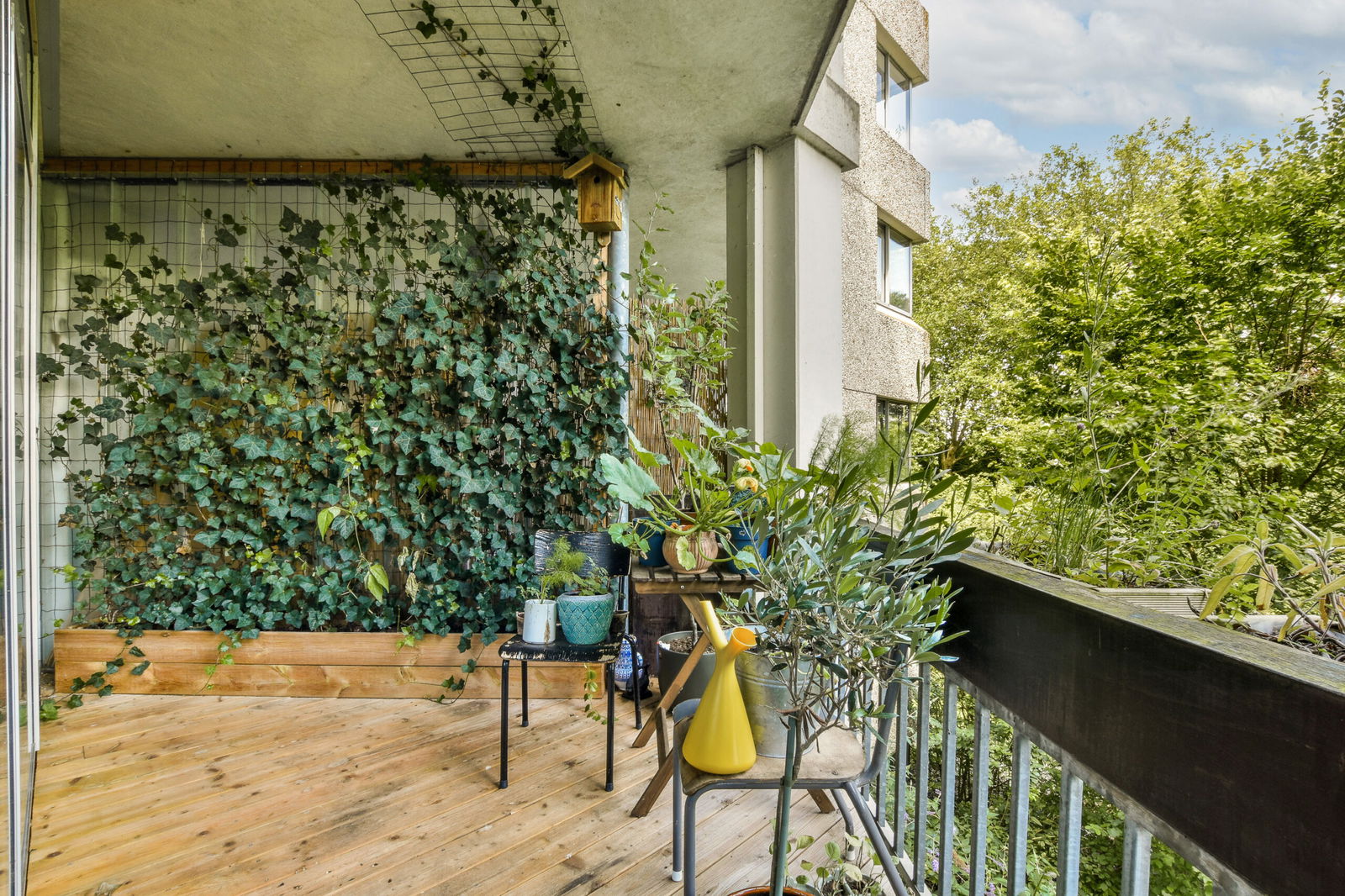 Het balkon van circa 6 m² ligt op het zuidoosten en is bereikbaar vanuit de woonkamer. Hier kunt u heerlijk genieten van de zon en het uitzicht op de groene omgeving.