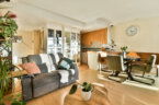 The spacious and bright living room is the heart of the home. Large windows allow natural light to pour in throughout the day. From the living room, you can step directly onto the sunny south-facing balcony, perfect for relaxing until late in the afternoon — ideal for a morning coffee or an evening drink.