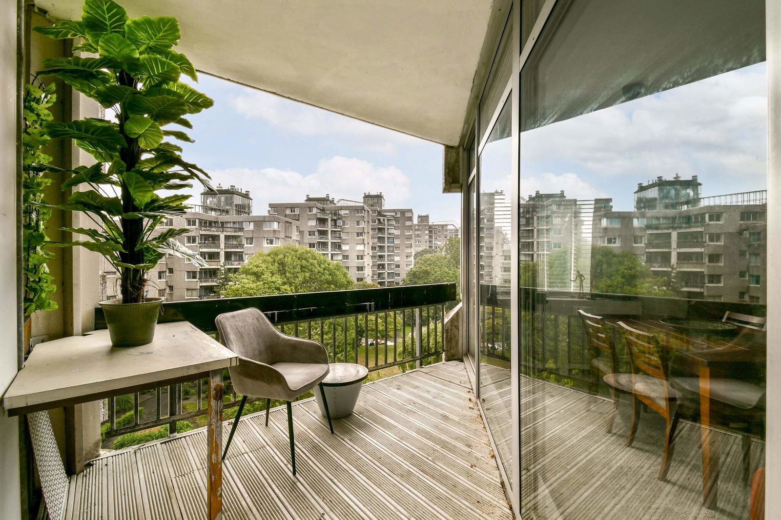 Living in Groenhoven means enjoying a well-maintained complex with a secured entrance, intercom system, and elevator. Shopping center Ganzenhoef is just around the corner, offering a wide range of stores such as Albert Heijn, Kruidvat, a pharmacy, eateries, and various small shops. Several bus lines and Metro 53 provide easy access to all parts of the city. For relaxation, Joop van Stigt Park, Bijlmerpark, and Gaasperplas are all close by. Additionally, the complex is a municipal monument, contributing to its unique charm and historical value.
