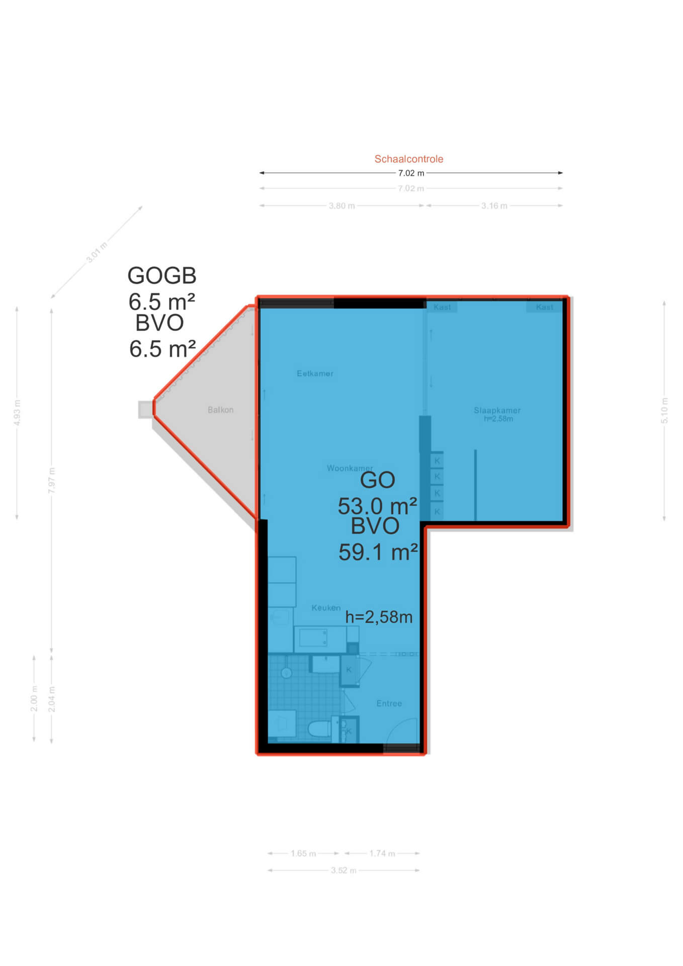 Bij binnenkomst via de entree en hal vind je de meterkast. De badkamer is uitgerust met een douche, wastafel, toilet en wasmachineaansluiting. De open keuken biedt voldoende kastruimte en heeft diverse inbouwapparatuur zoals koelvriescombinatie, afwasmachine, oven en inductie kookplaat .De ruime woonkamer heeft via een schuifpui toegang tot het balkon. Het appartement beschikt over een ruime lichte slaapkamer welke voldoende ruimte heeft voor een tweepersoonsbed, kledingkast en bureau.