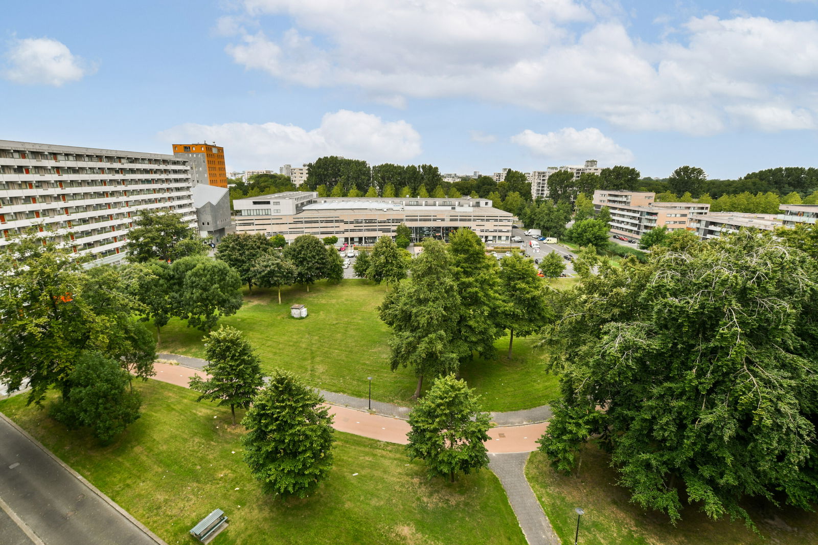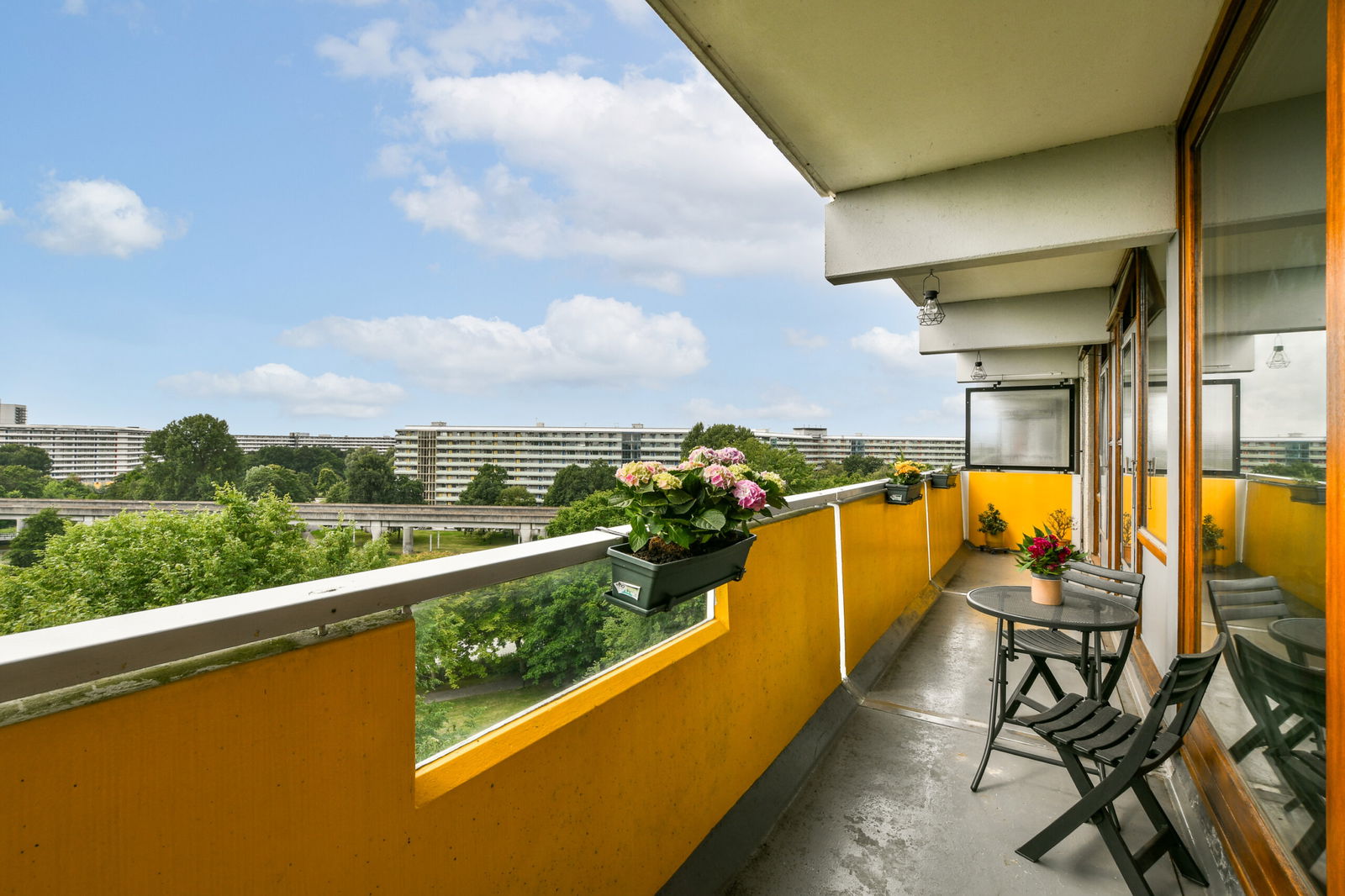 Via de verzorgde centrale entree bereikt u de liften naar de achtste verdieping. U komt binnen via een rustige galerij die toegang geeft tot de woning. De hal biedt direct toegang tot de half open keuken aan de galerijzijde en de ruime woonkamer aan de achterzijde. Vanuit de woonkamer stapt u zo het zonnige balkon op het zuidwesten op, waar u volop kunt genieten van het vrije uitzicht over het groen.
