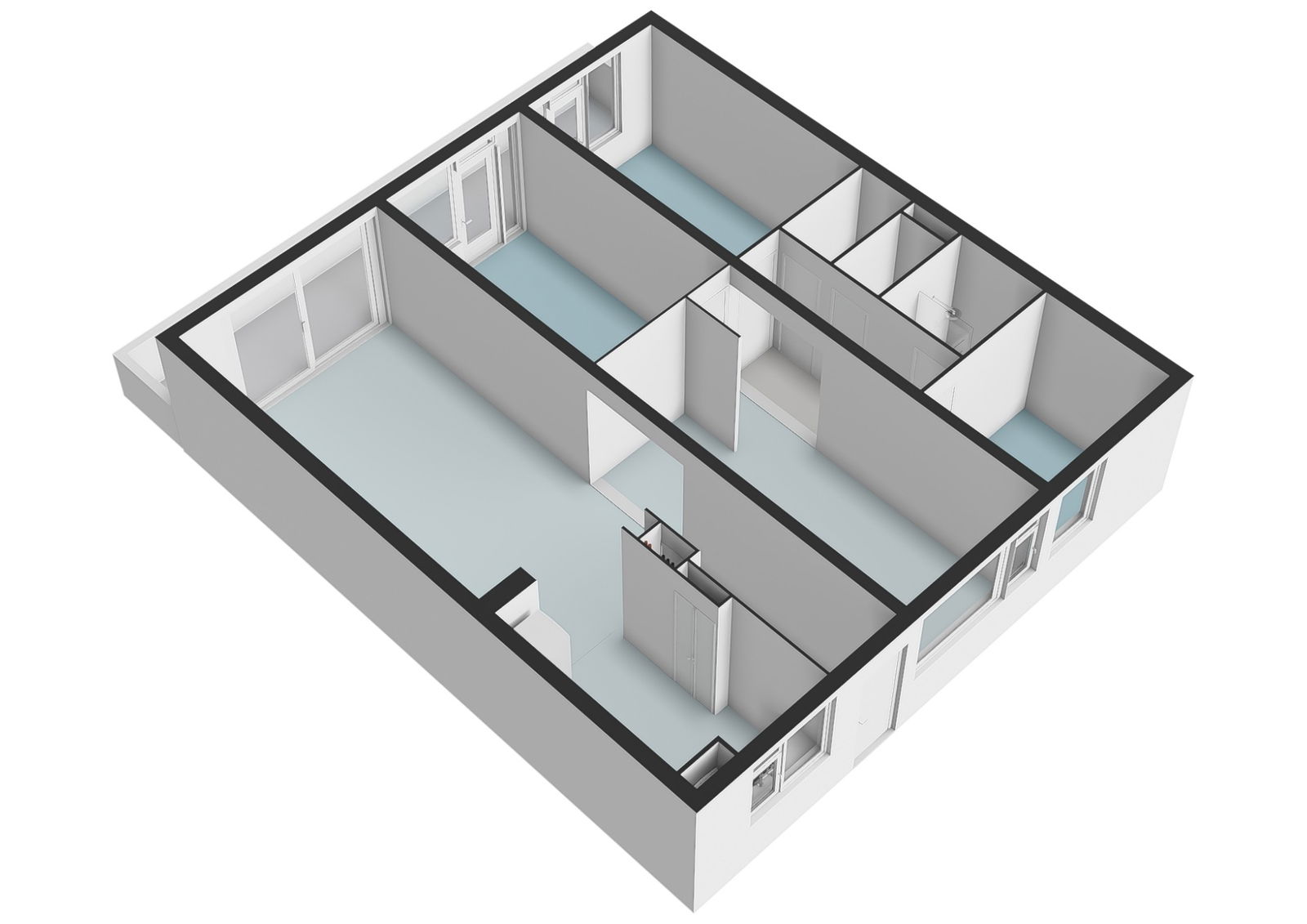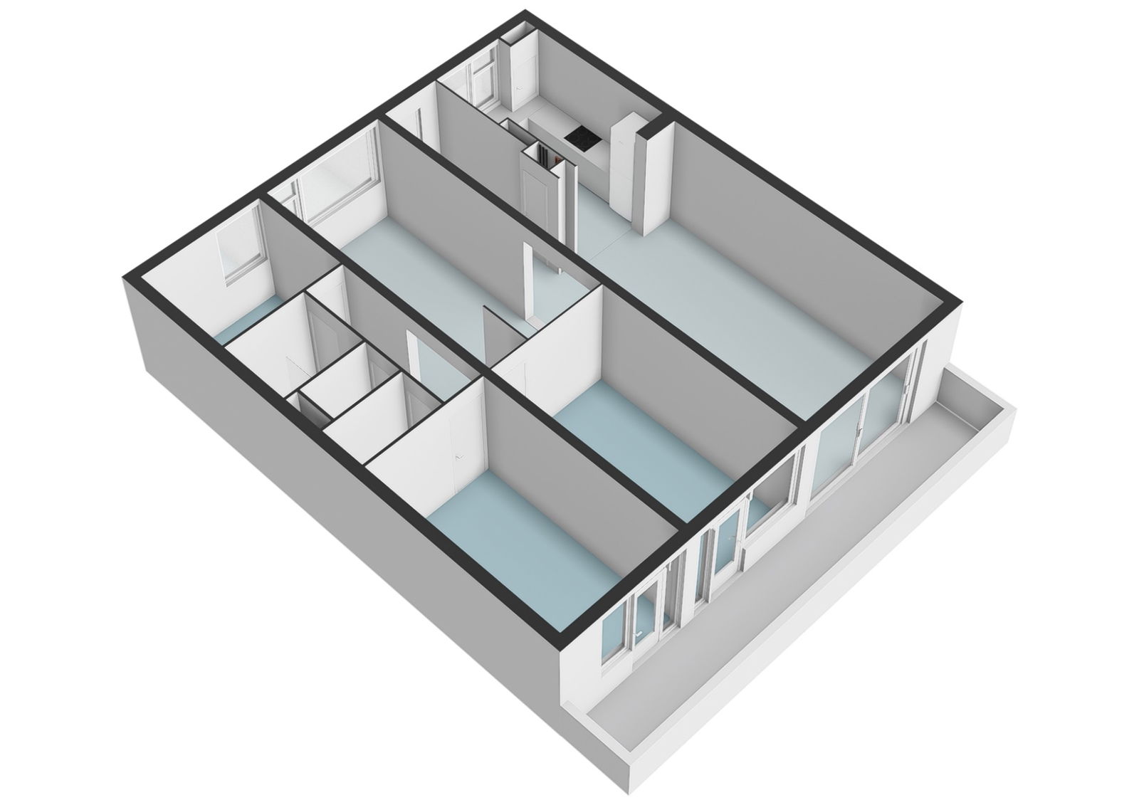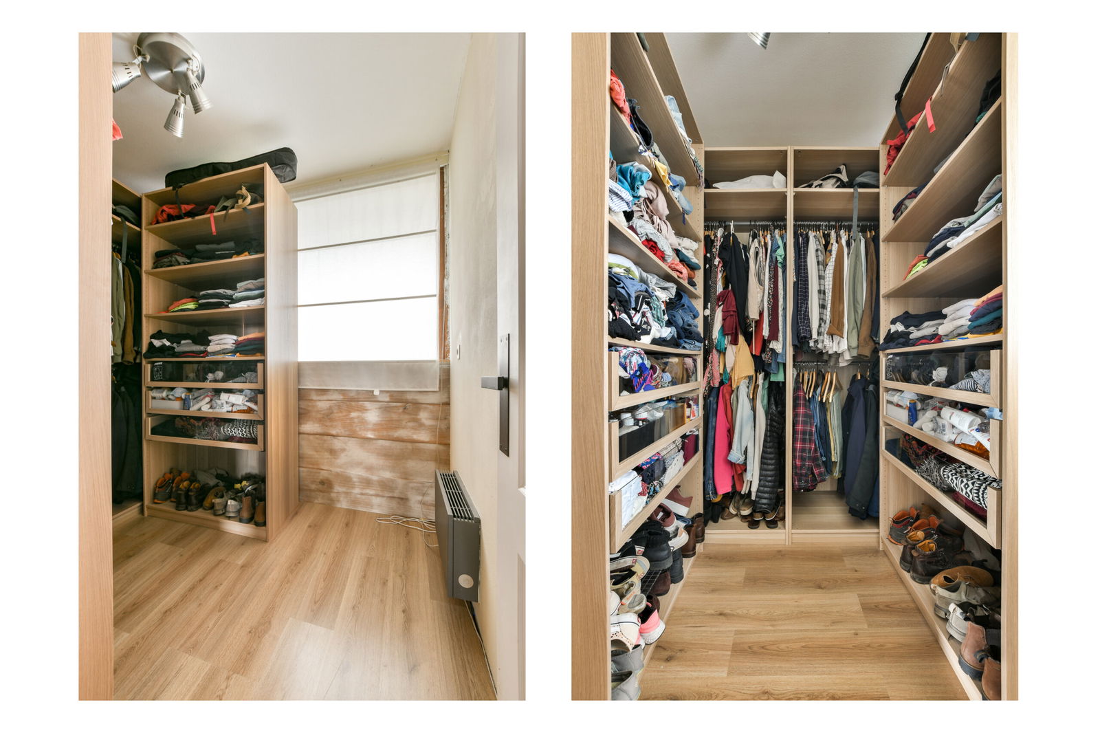 De overloop verbindt de drie slaapkamers, waarvan er twee toegang hebben tot het balkon. De derde slaapkamer ligt aan de galerijzijde. De badkamer is uitgerust met een douche en wastafel. Separaat bevindt zich het toilet. Naast het toilet is een praktische berging met wasmachineaansluiting aanwezig.