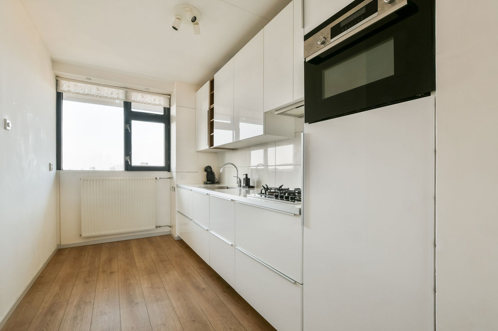 De woning is gelegen op de hoek van de galerij, wat diverse voordelen biedt: er is geen doorloop langs de woning, waardoor u extra privacy ervaart. Bovendien beschikt het appartement over een extra raam in de woonkamer, wat zorgt voor nog meer daglicht. Door de hoekligging ontstaat tevens een extra ‘privé’ stukje galerij bij de entree.