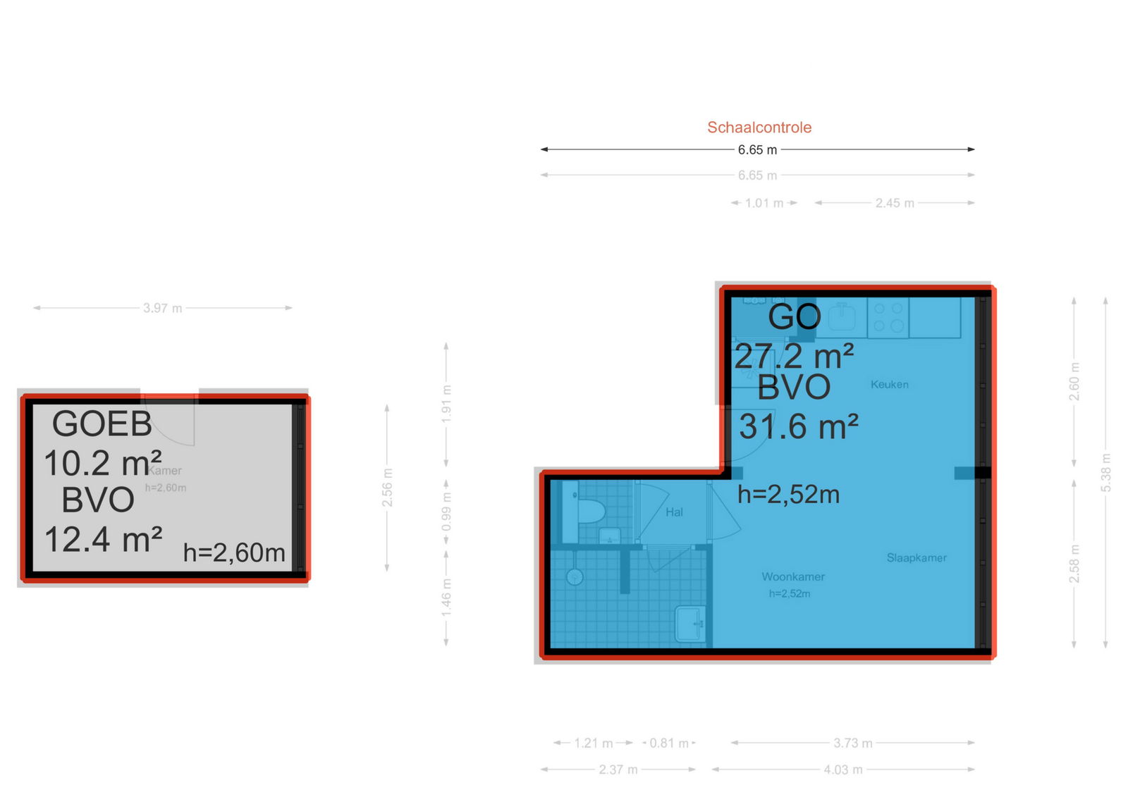 • Woonoppervlakte studio: ca. 27 m² (op de eerste verdieping)