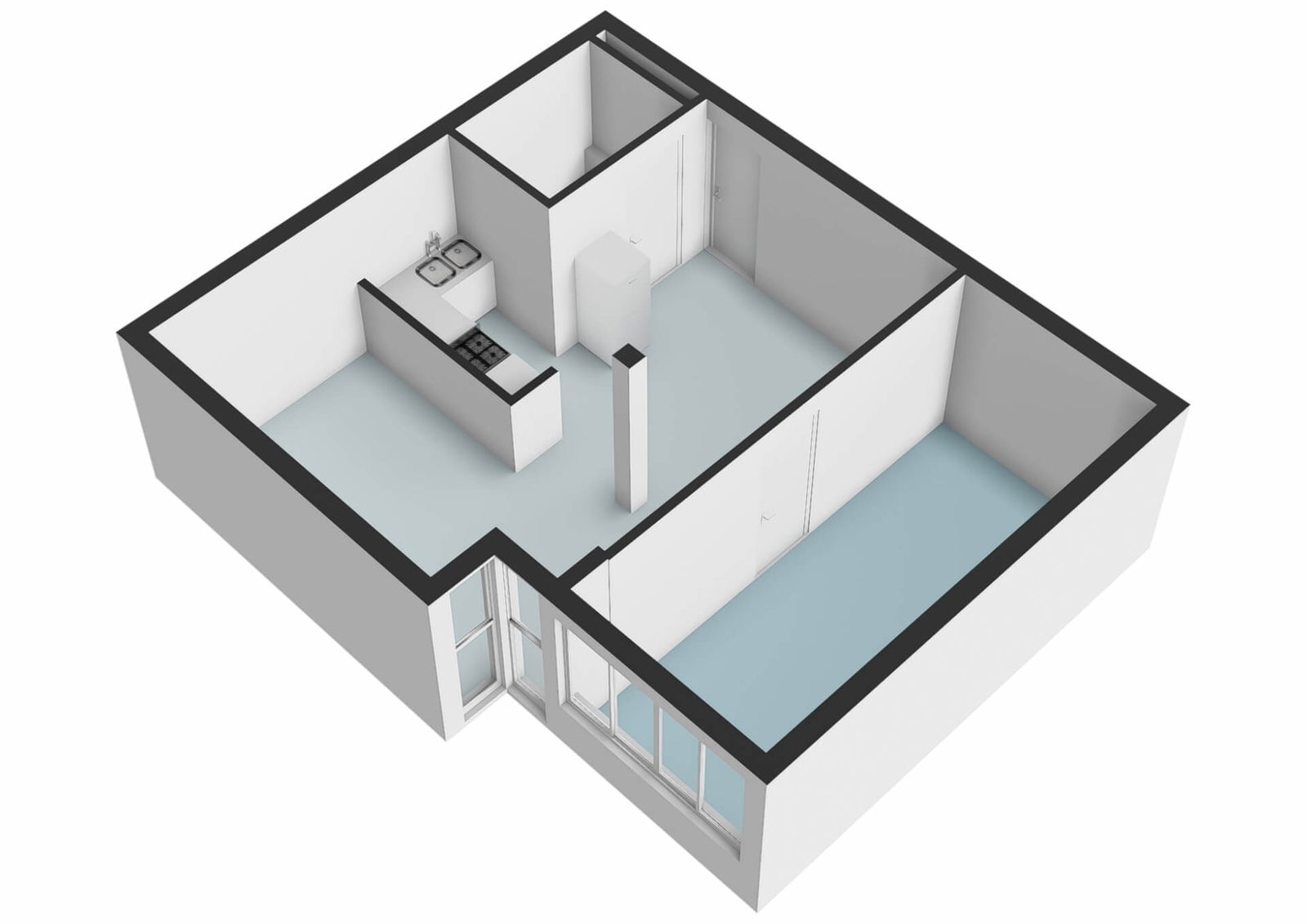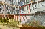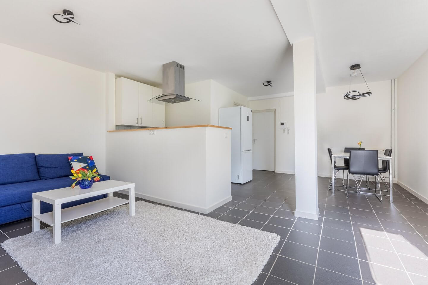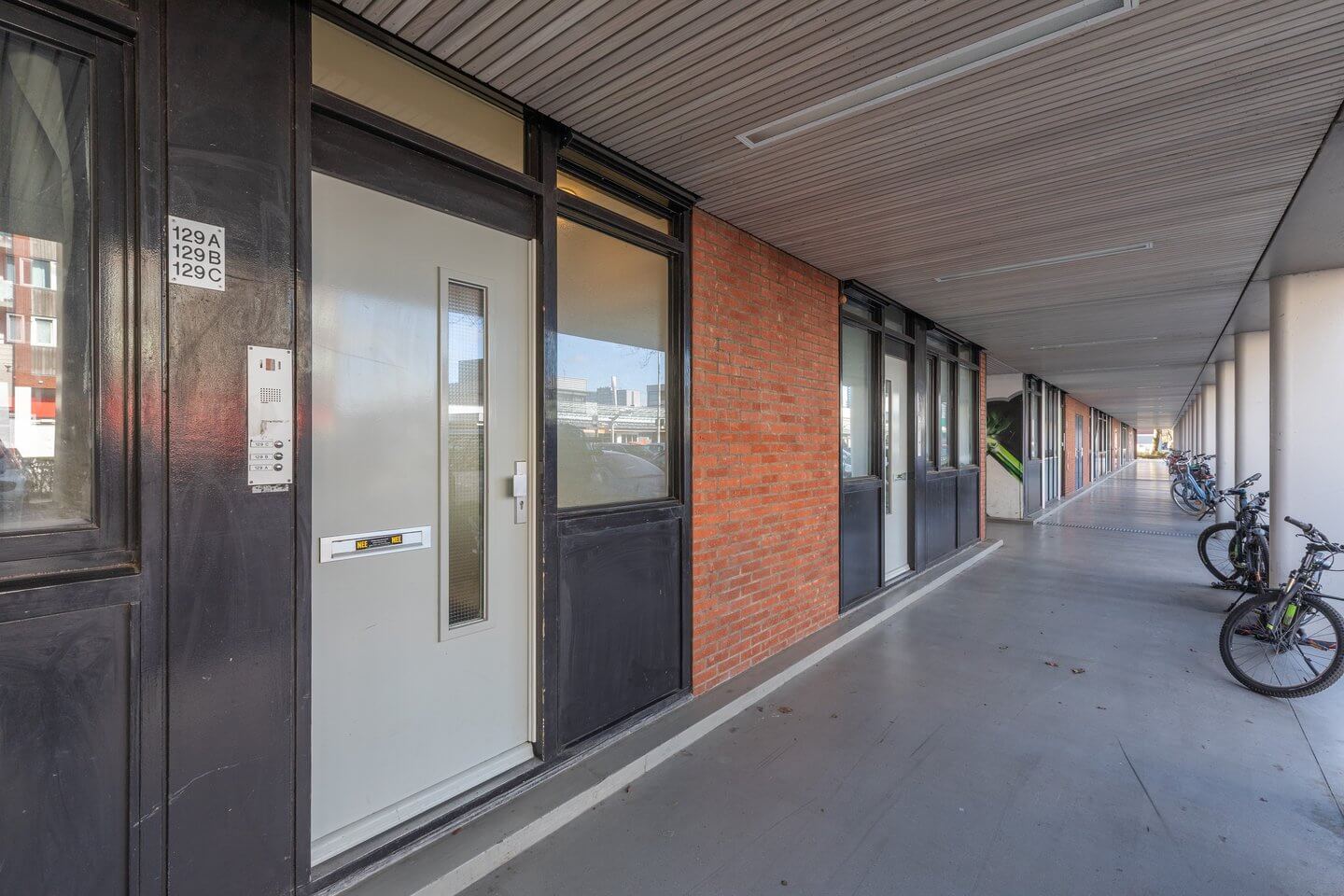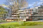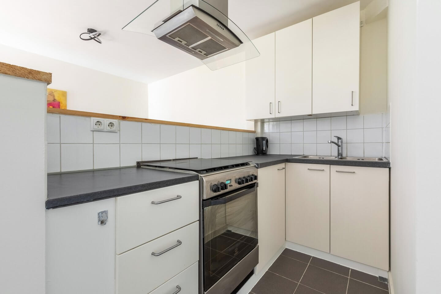 Het gebouw heeft een gezamenlijke entree met video-intercom. Op de eerste verdieping kom je binnen in de lichte woonkamer met open keuken en uitzicht op groen. De badkamer ligt naast de woonkamer, en de ruime slaapkamer beschikt over een brede glazen pui met openslaande ramen – ideaal op warme dagen.