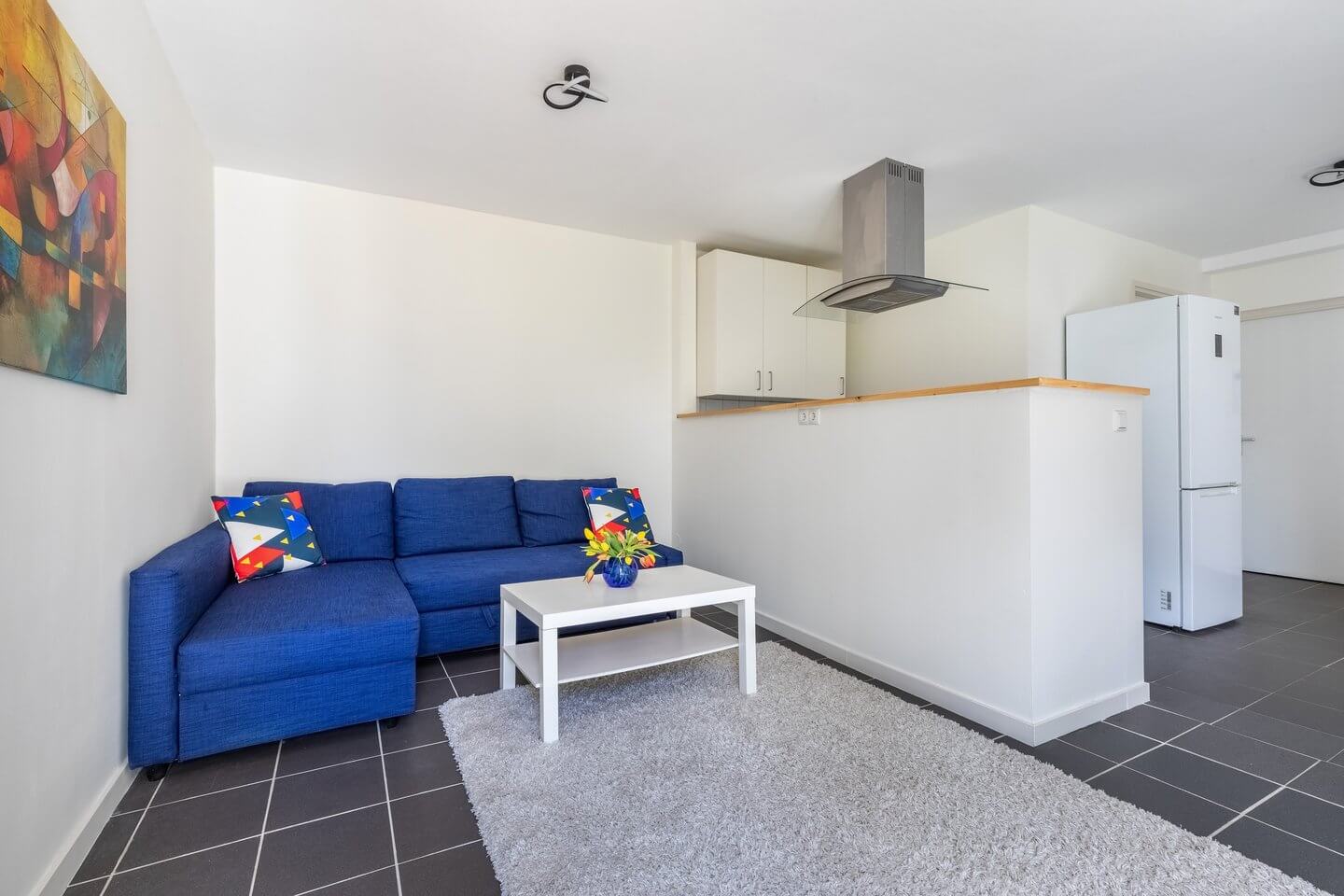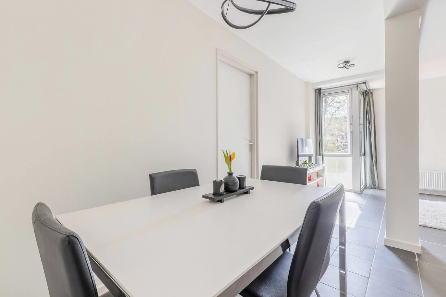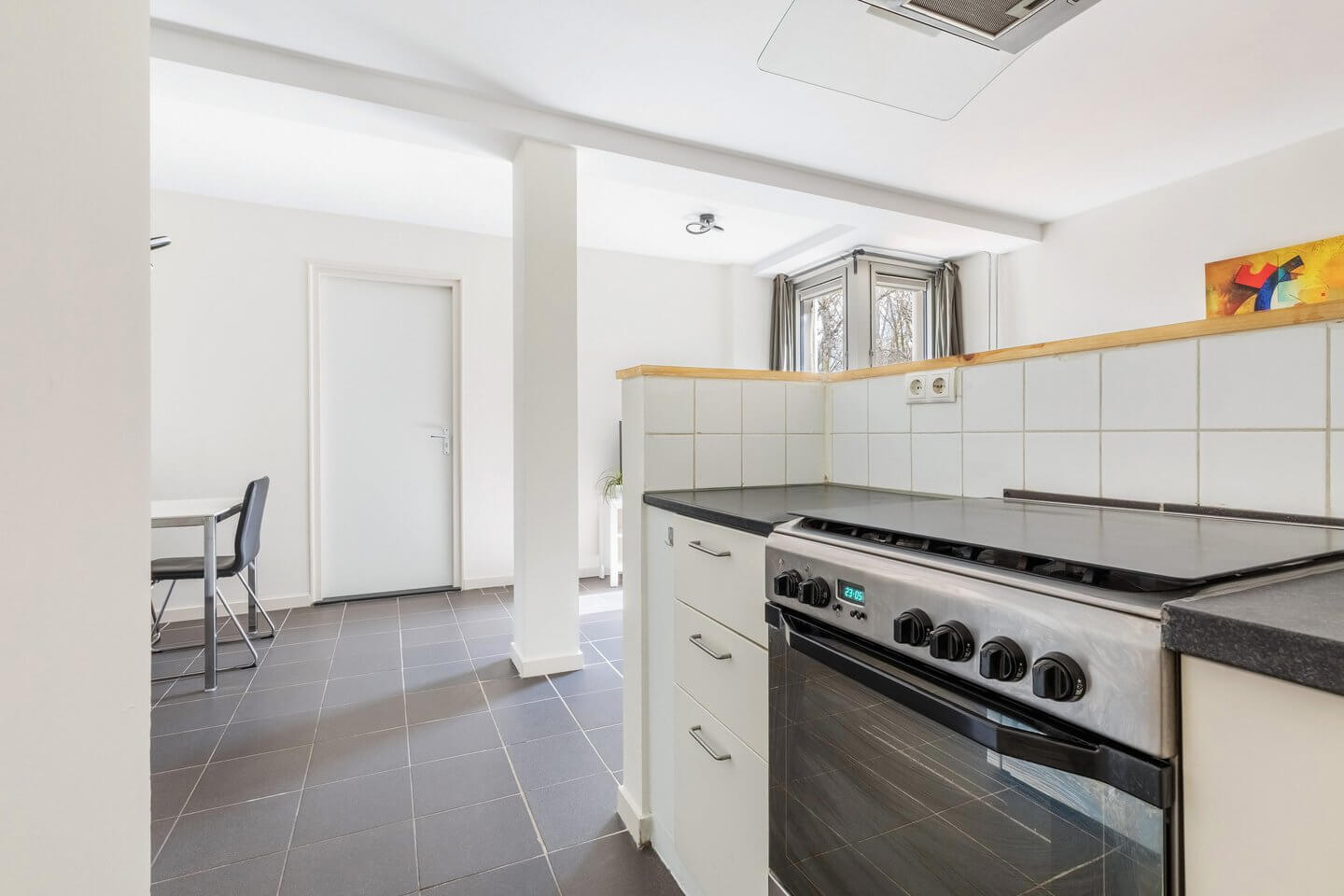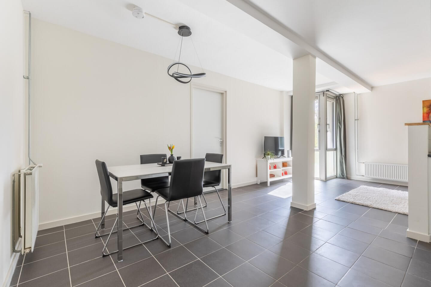 De woning is helemaal instapklaar en heeft een lichte woonkamer met een open keuken. Dankzij de grote ramen kijk je uit op het groene binnenterrein – zowel vanuit de woonkamer als de slaapkamer. De ramen kunnen kantelen of helemaal open, waardoor je binnen en buiten makkelijk laat samensmelten. De slaapkamer is ruim en voelt heerlijk rustig aan, mede door de bomen die voor verkoeling en een groene sfeer zorgen. Bonus: je wordt hier wakker met het gezang van vogels zoals merels en tjiftjaffen.