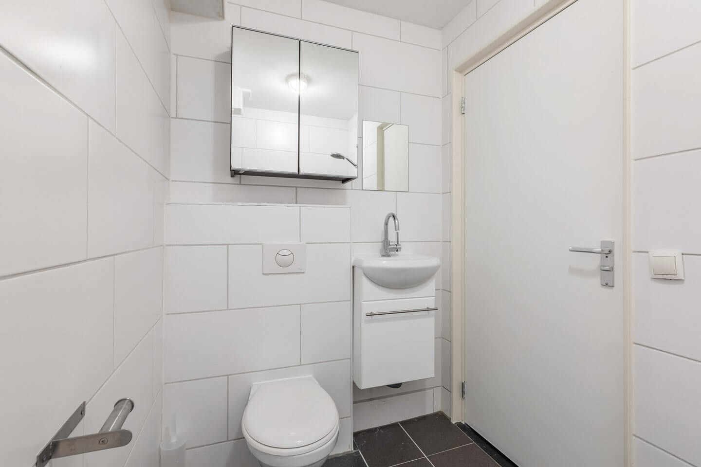 De moderne badkamer is voorzien van een inloopdouche, wastafel en een hangtoilet. Daarnaast is er beneden een aparte wasruimte ingericht met aansluitingen voor een wasmachine en droger – super praktisch en je hebt geen last van het geluid in huis.