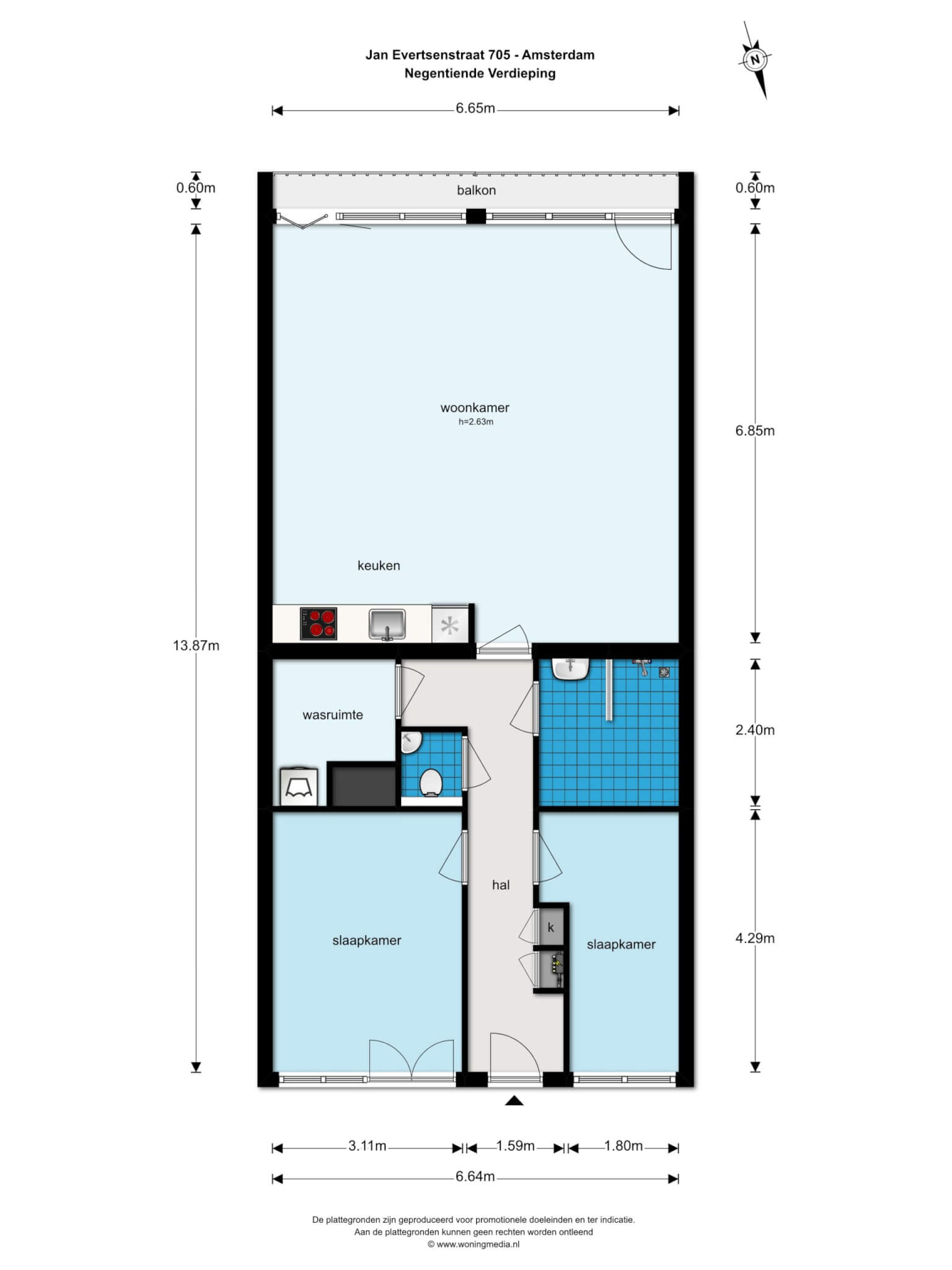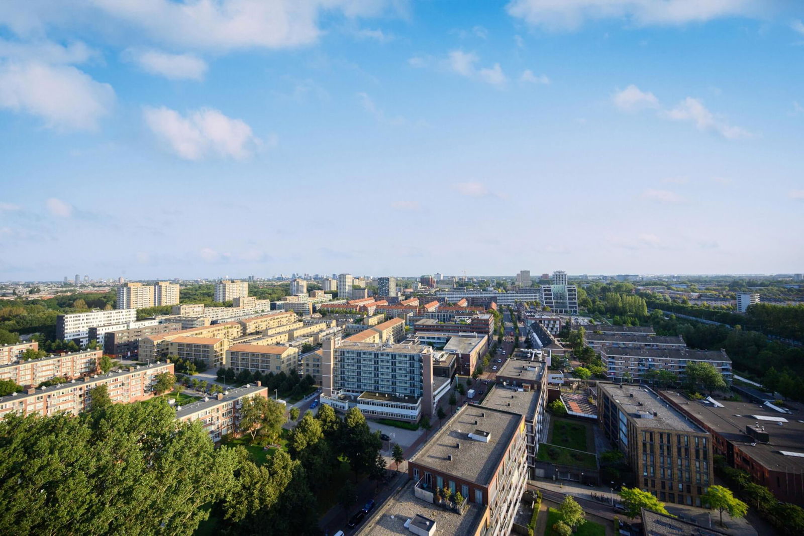 Gelegen op de 19e (!) en tevens BOVENSTE verdieping! Fraaie vergezichten tot aan Schiphol en de Johan Cruijff Arena.