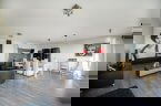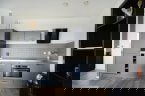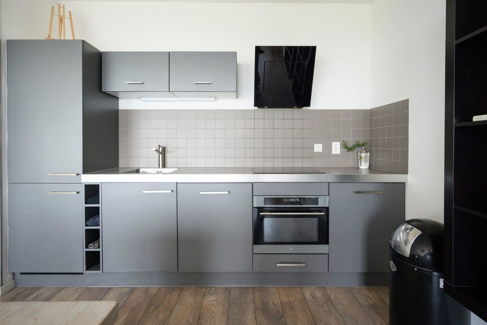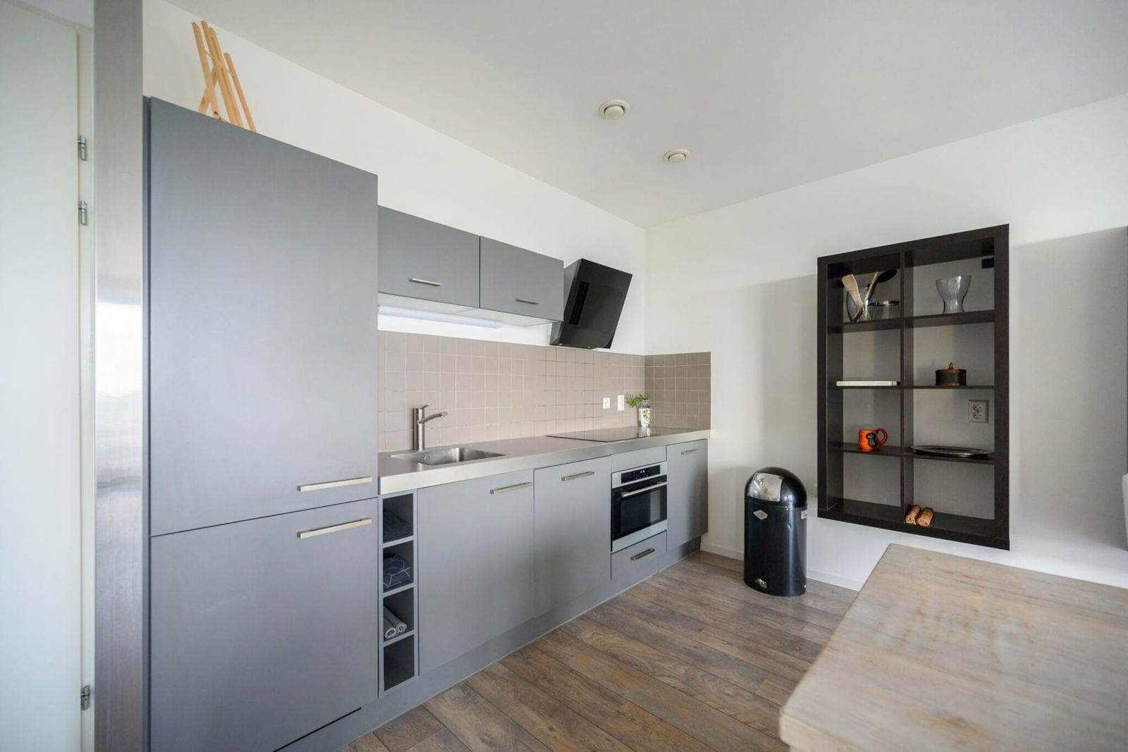 De open keuken, die aan de linkerzijde van de woning is gesitueerd, is voorzien van diverse inbouwapparatuur.