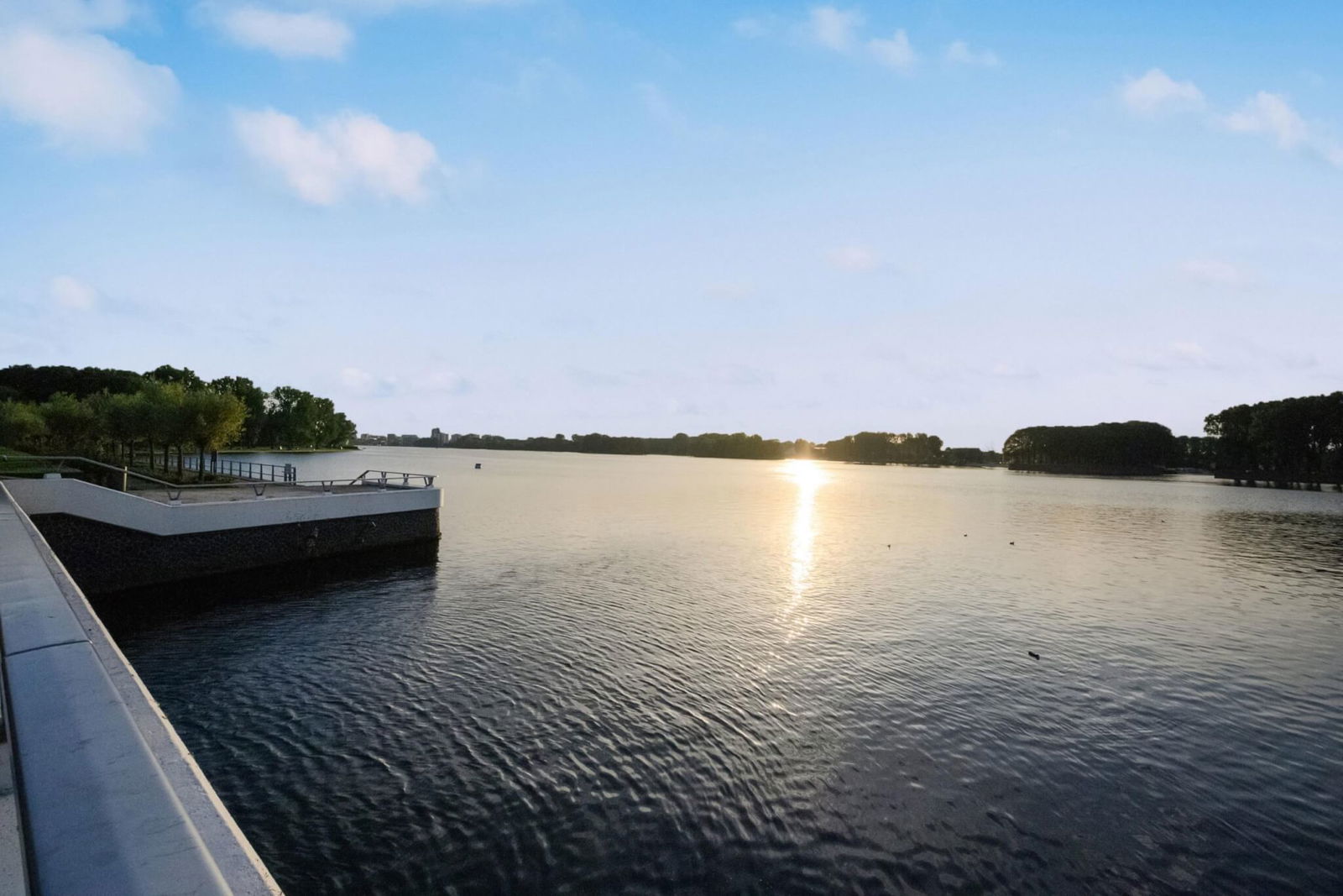 Vanuit de woonkamer heeft u schitterend uitzicht over de stad en Sloterplas, doordat bijna de gehele breedte van de woning uit glas bestaat. Als u aan de linkerzijde de harmonicadeuren opzet kunt u heerlijk van het uitzicht, de buitenlucht of van het balkon genieten.