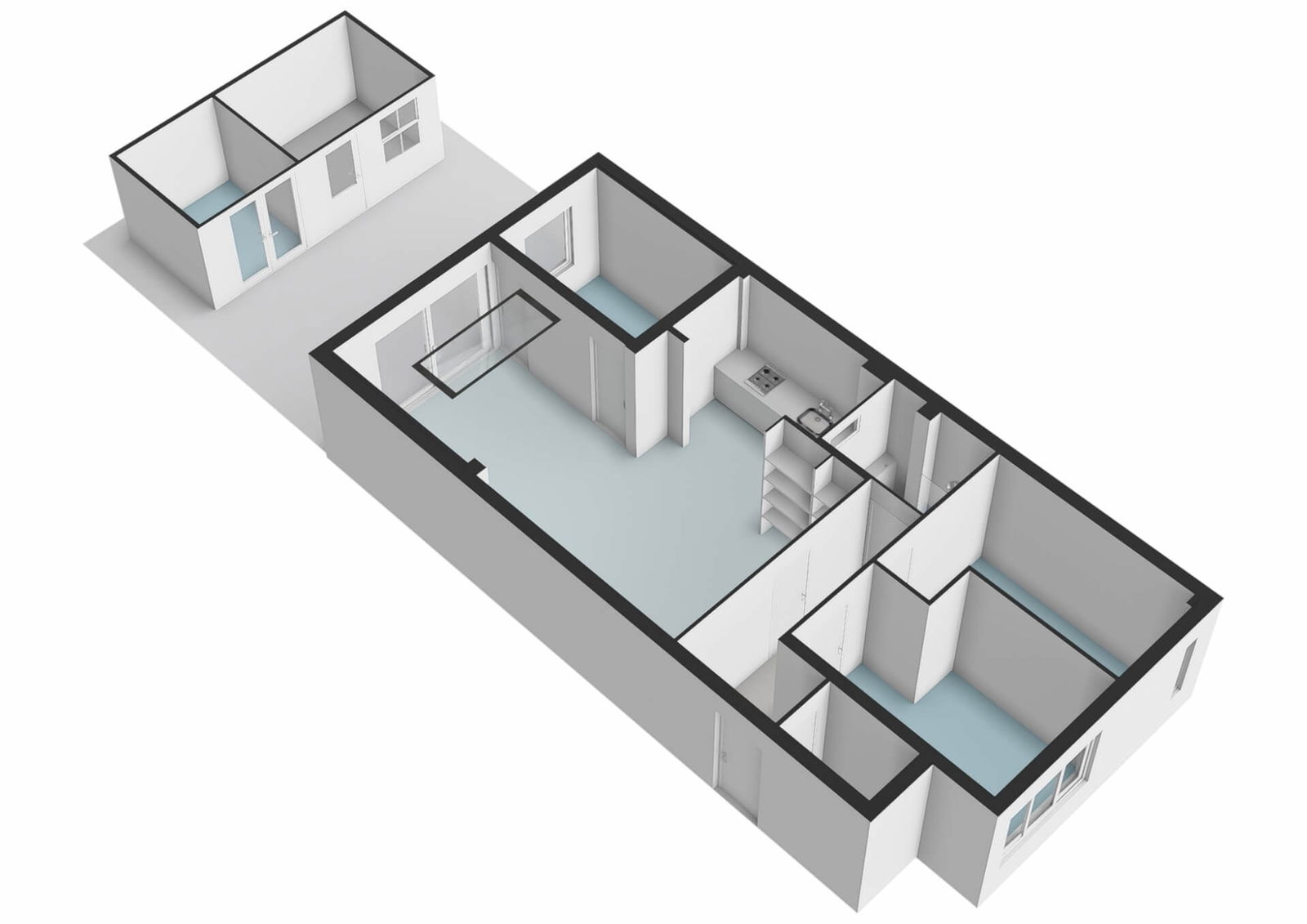 Through the spacious hall with a convenient storage area, you enter the generous living room: the beating heart of the home, seamlessly connected to the kitchen. This inviting space is perfect for gathering and enjoying time together. The kitchen offers ample cabinet space and is fitted with various built-in appliances, including a gas hob, oven, fridge-freezer, dishwasher, and extractor hood. At the rear of the living room, you’ll find the sitting area and a bedroom, directly adjacent to the southwest-facing garden. Thanks to the skylight and large sliding doors, the living room is beautifully bright.